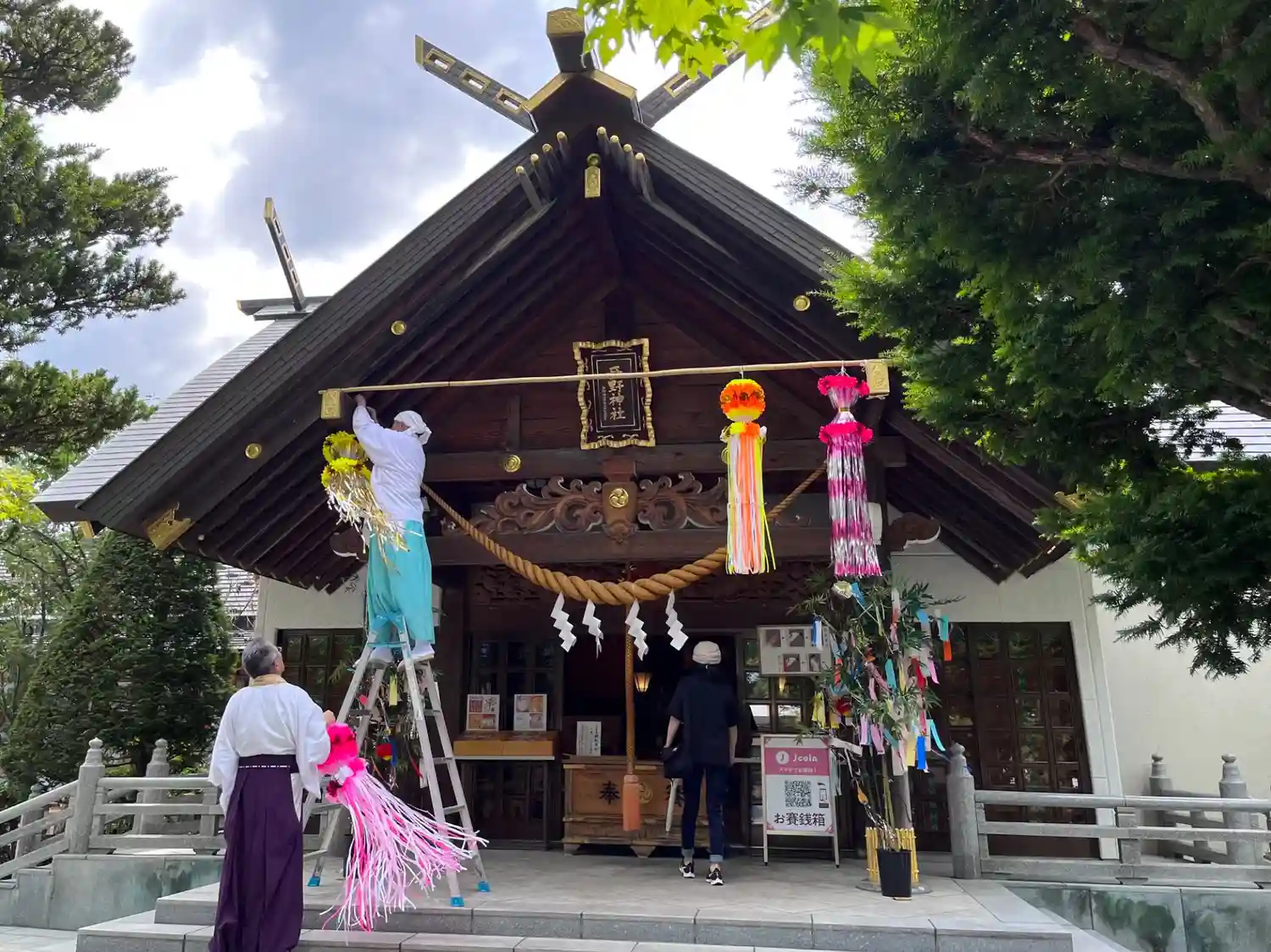 しばらくすると、神職の方々が飾りつけを始めました。