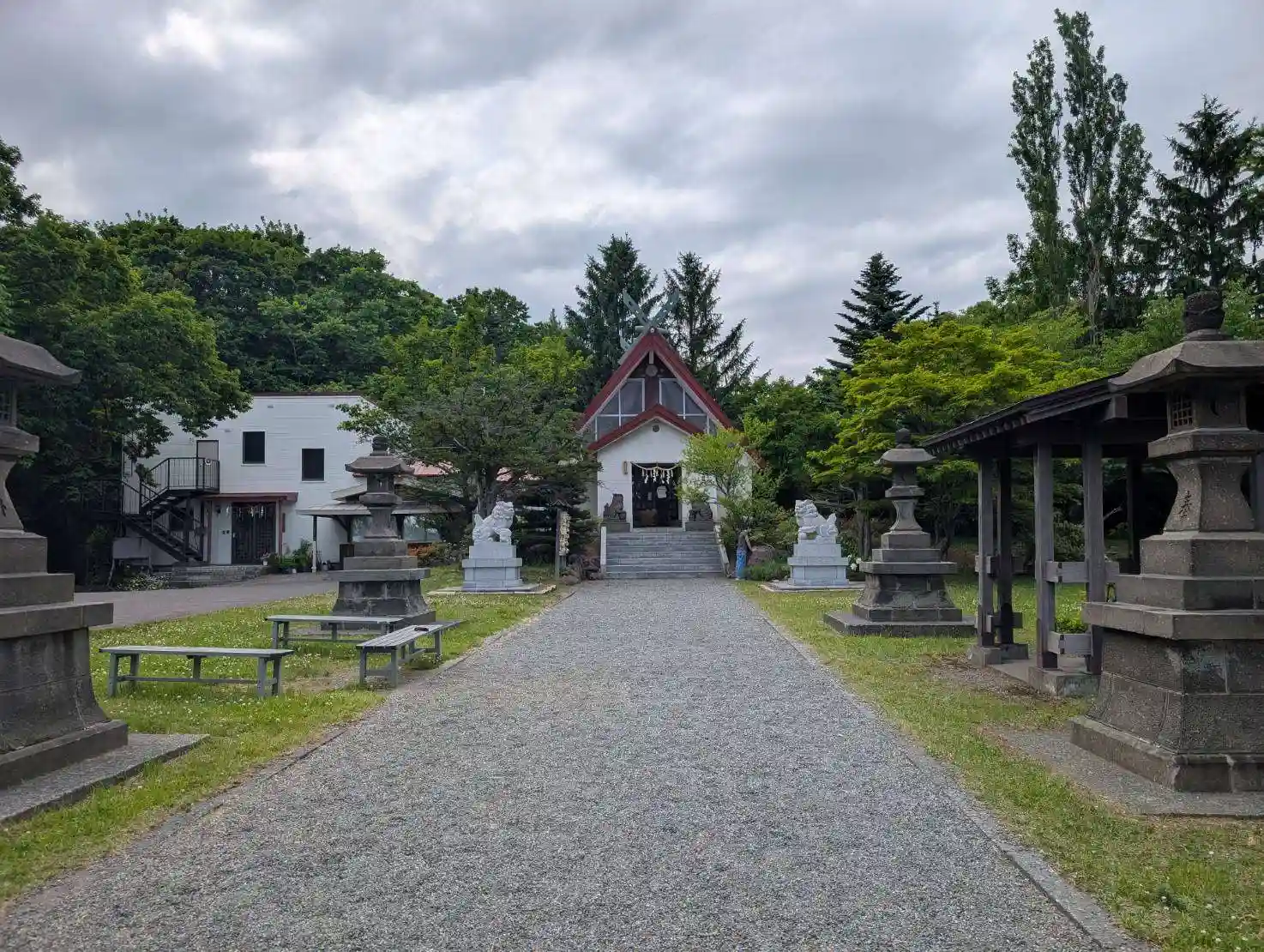 個性的な社殿と立派な狛犬さん🎶