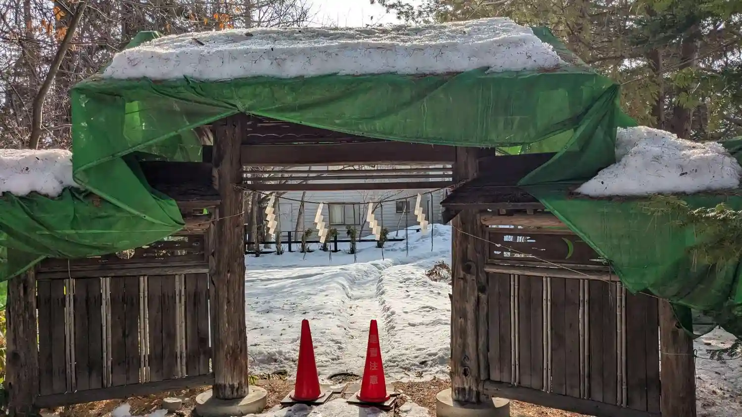 ⛩️⛄️<鳥居の上に雪あります。落雪にご注意ください(左上にご注目👀)