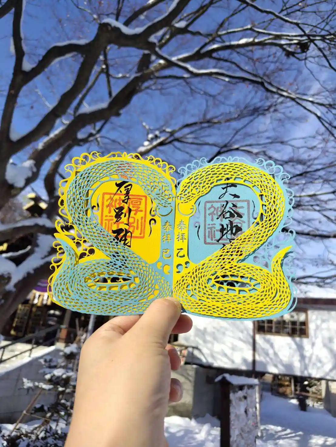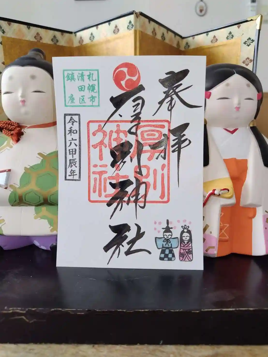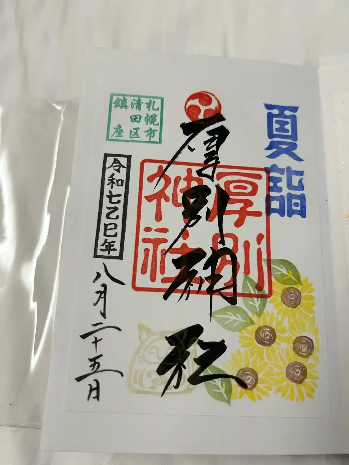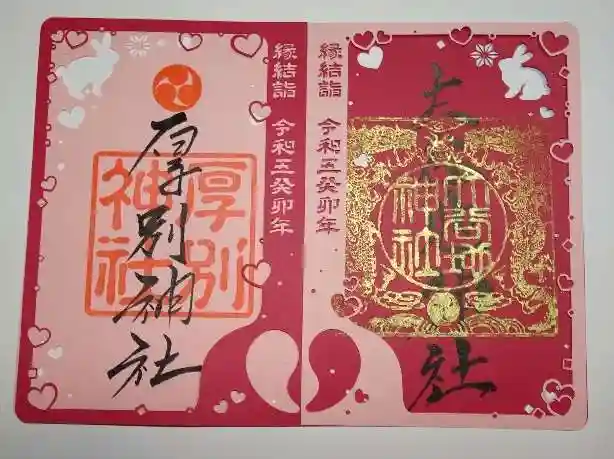 大谷地神社と厚別神社の合わせ切り絵御朱印が可愛いです。