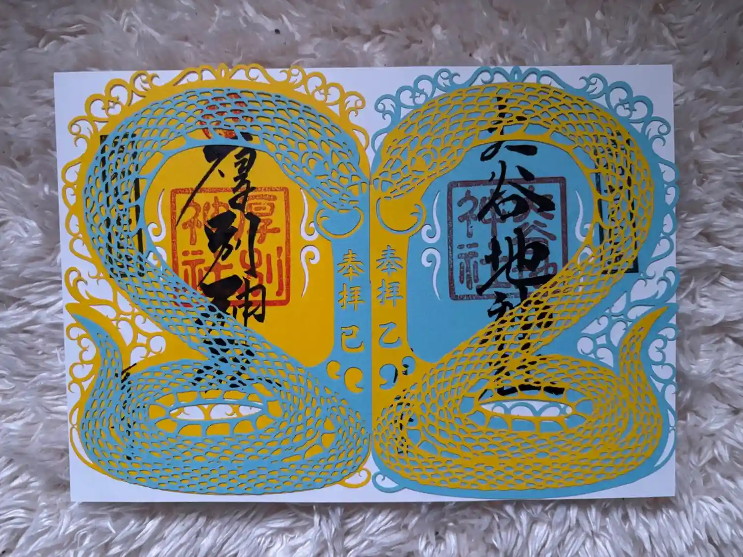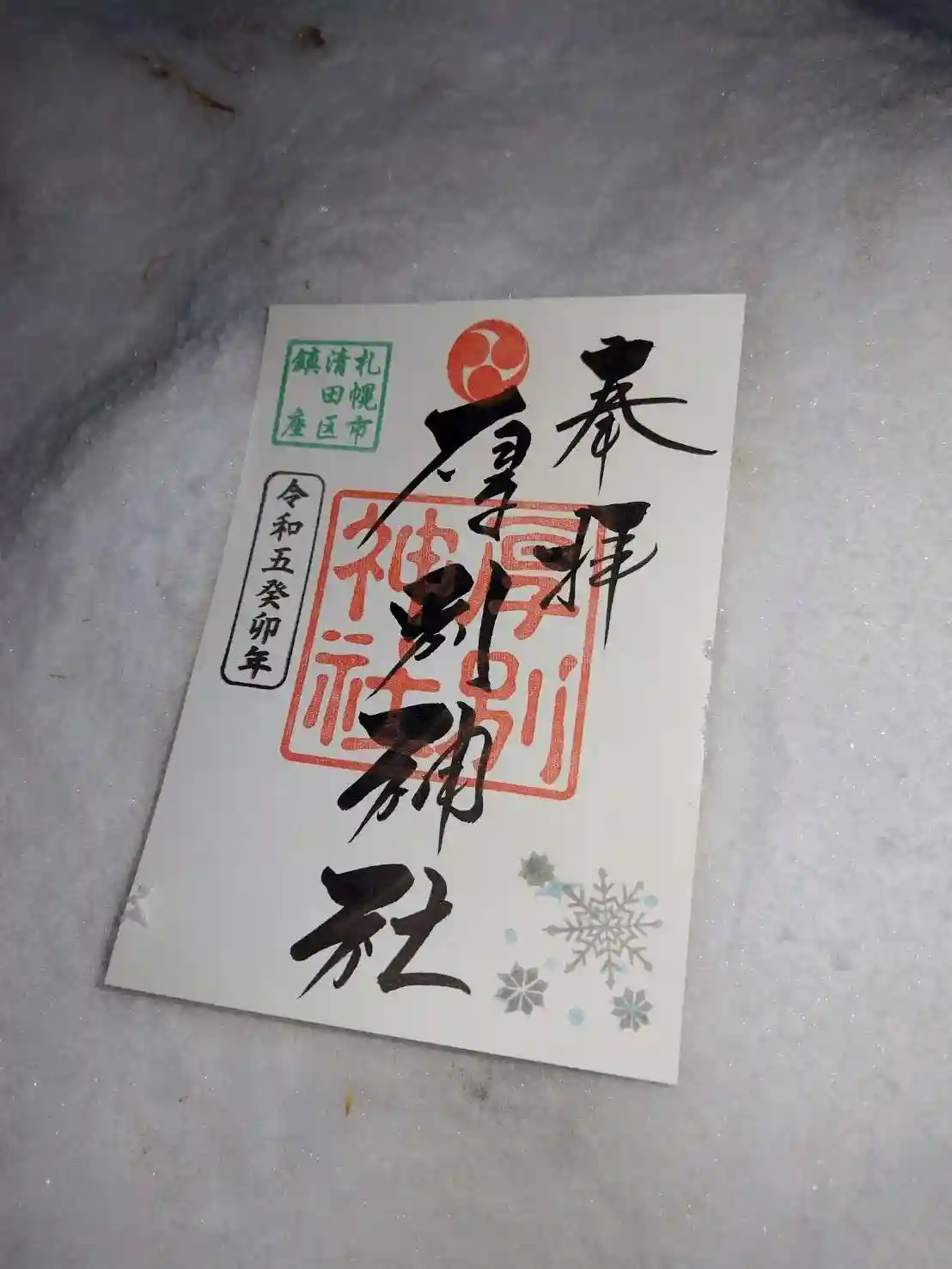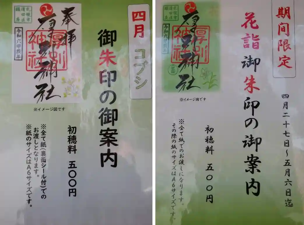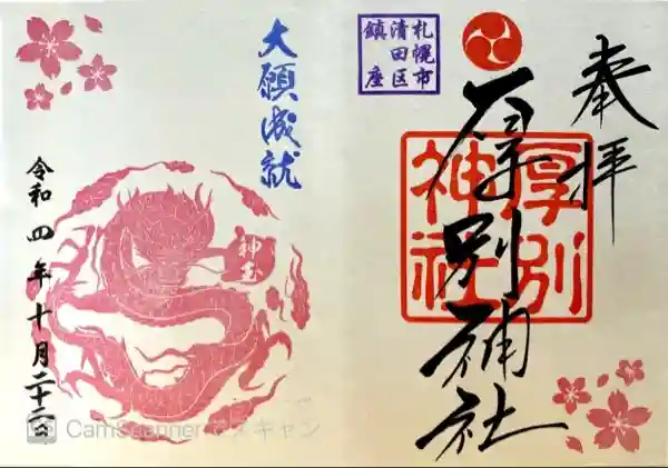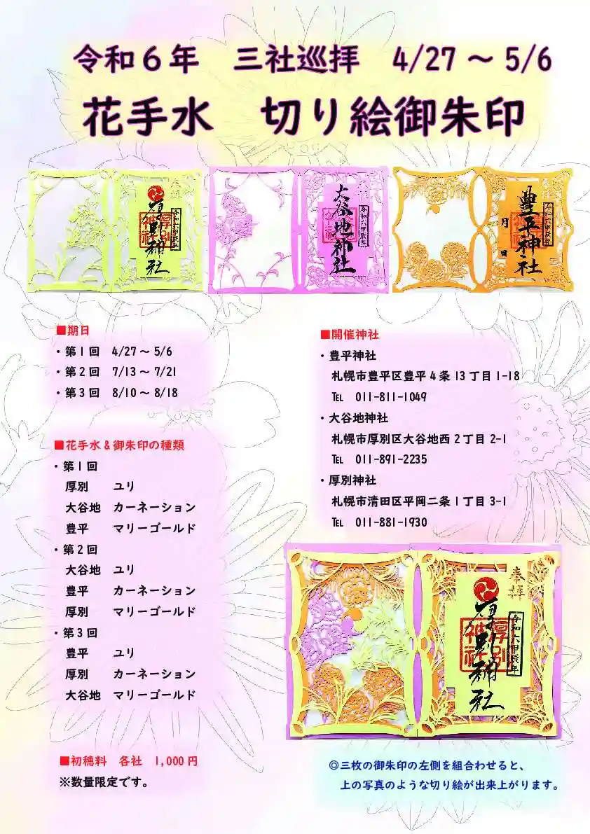 大谷地神社と厚別神社の合わせ切り絵御朱印が可愛いです。