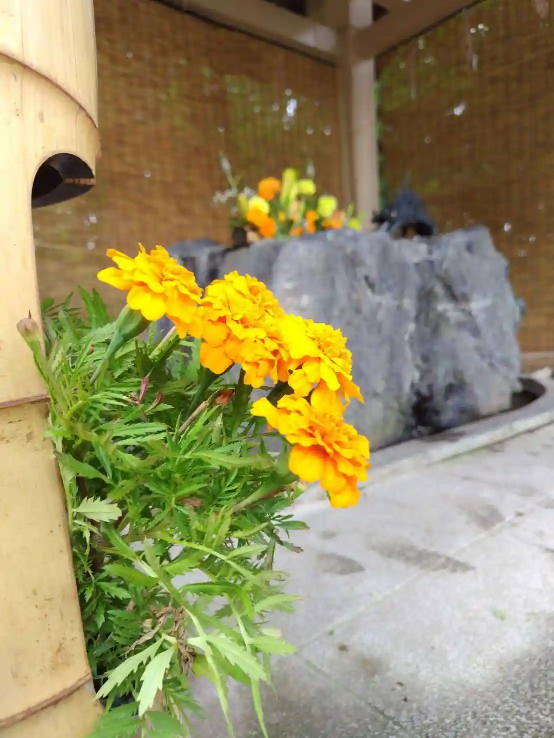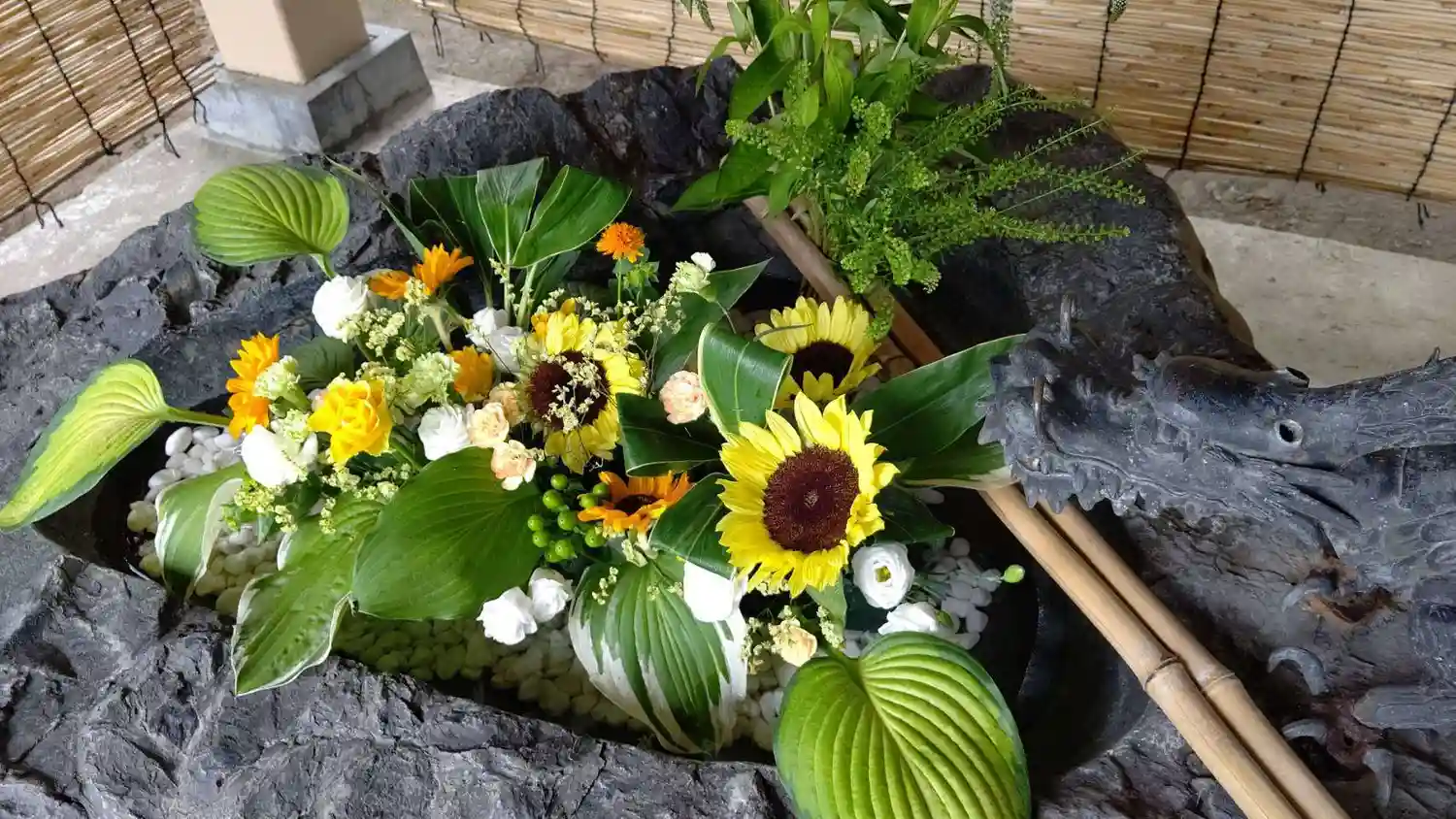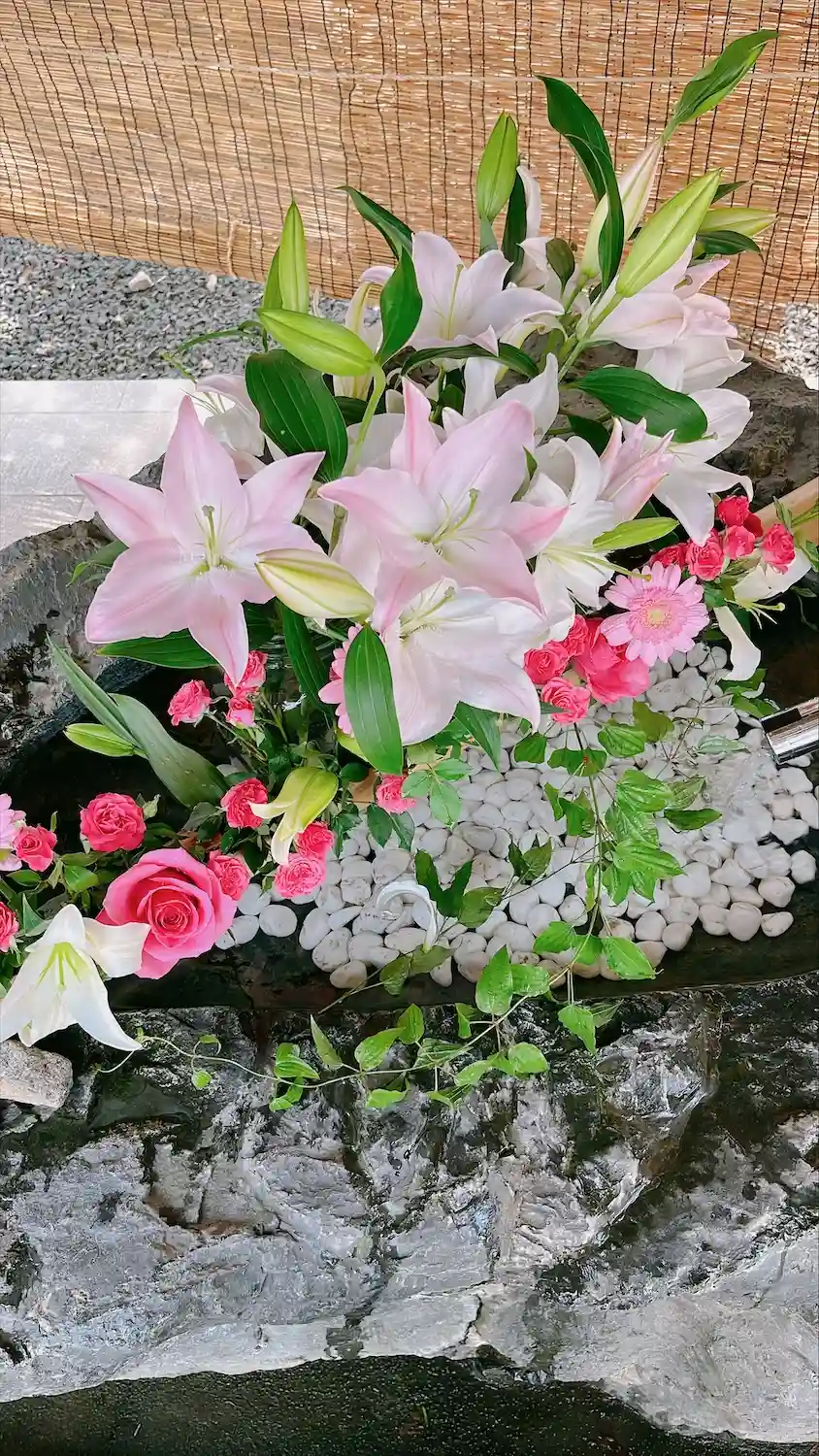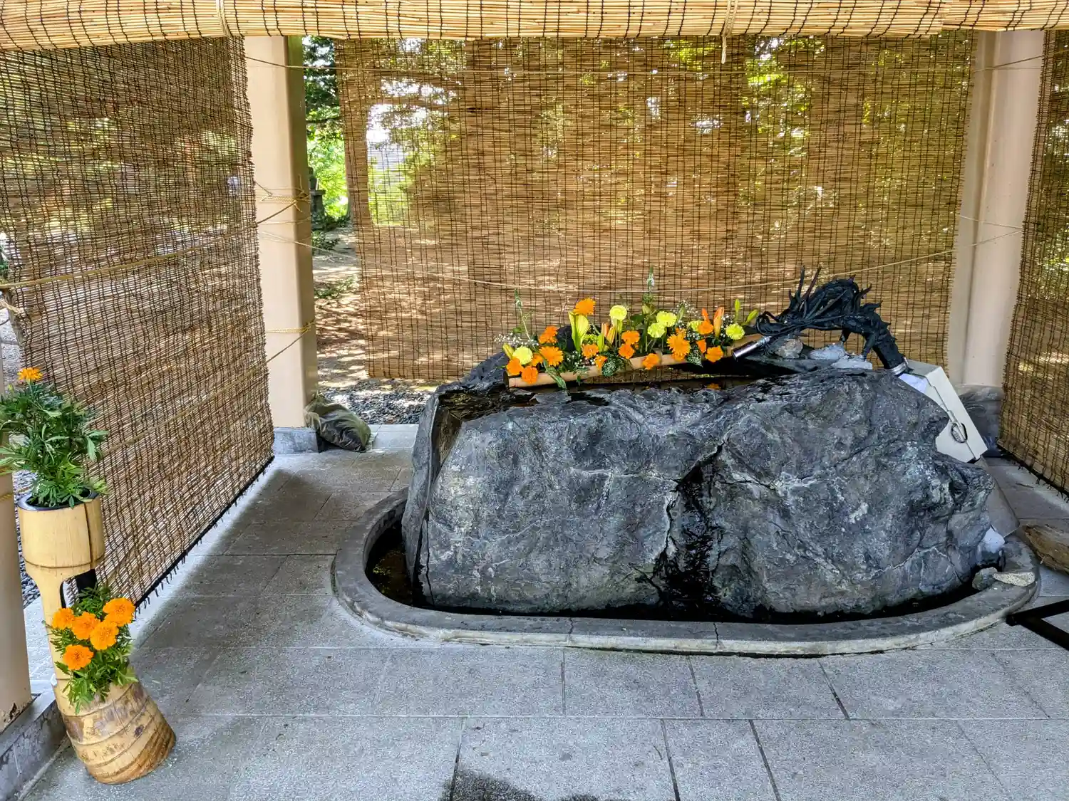 涼しげな彩りの美しい手水に加え、手水舎の周囲も涼を感じる雰囲気に演出されてい…