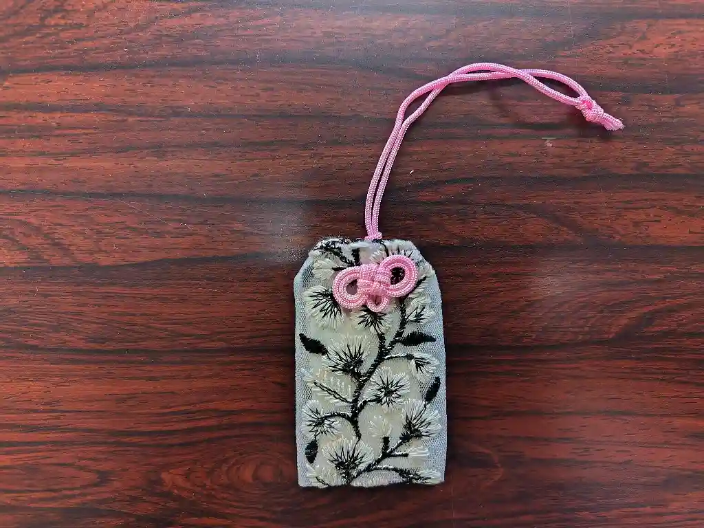 新規授与品の桜柄のレース御守です。