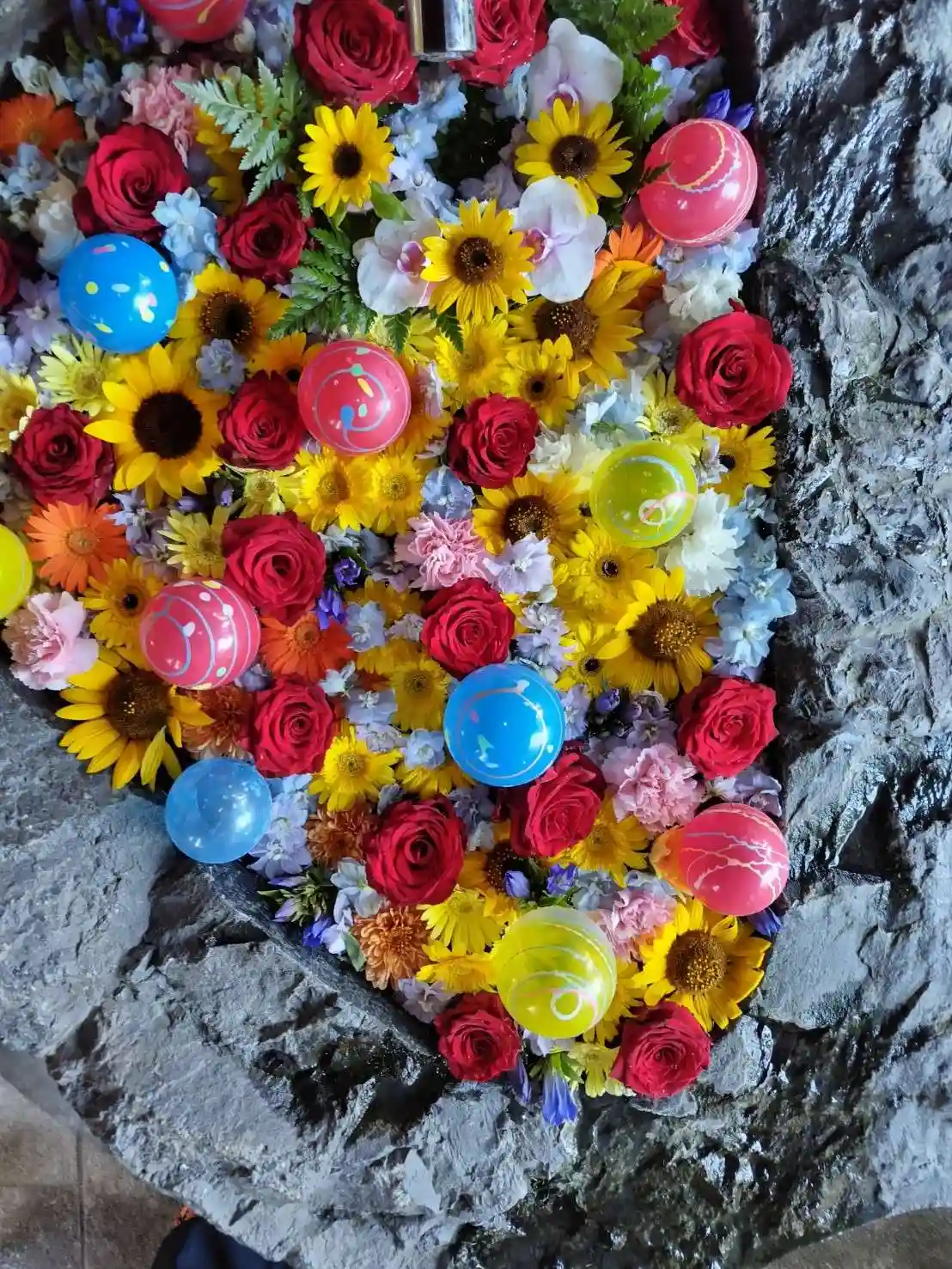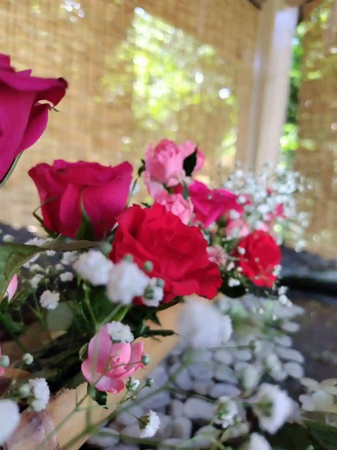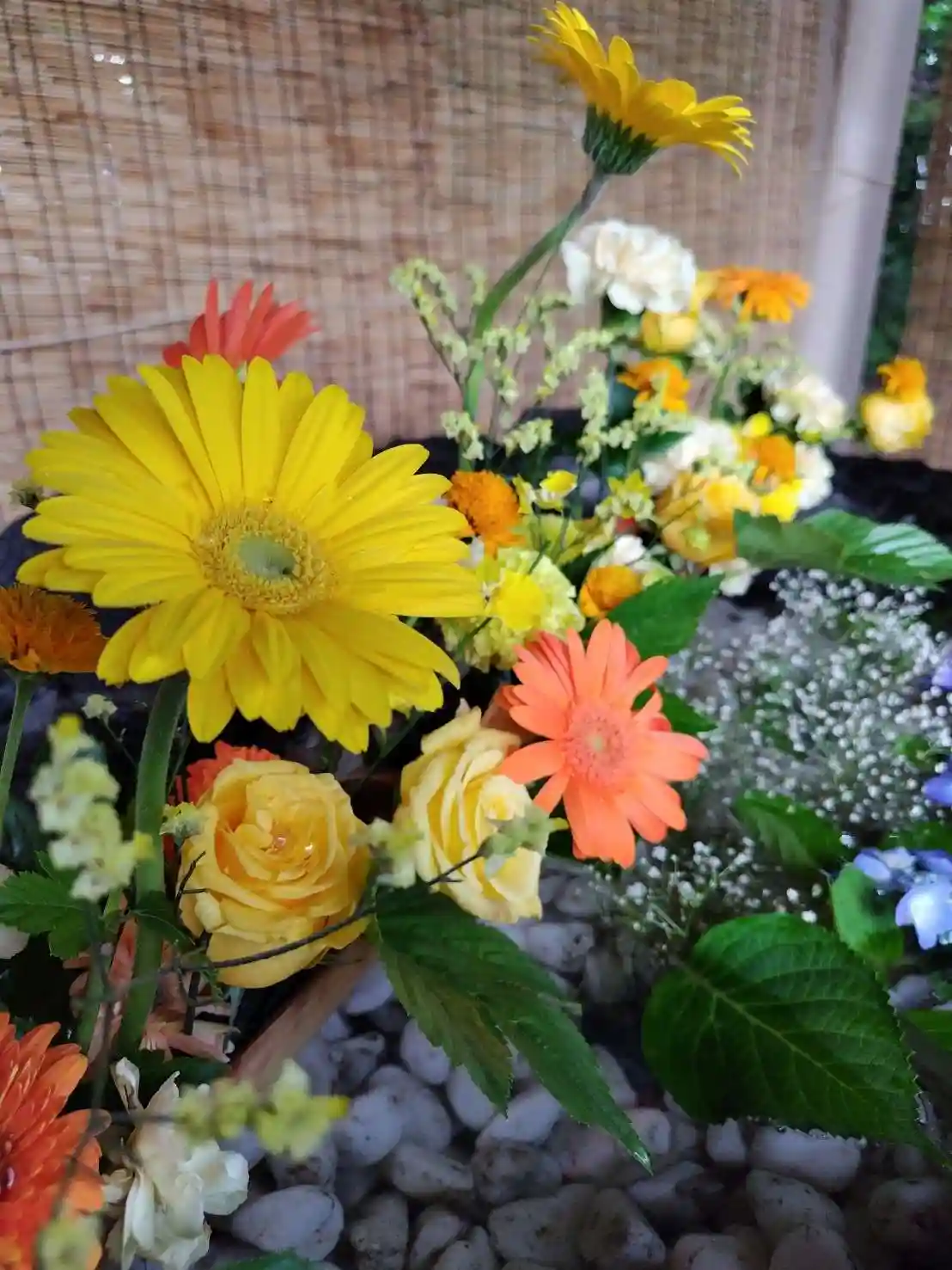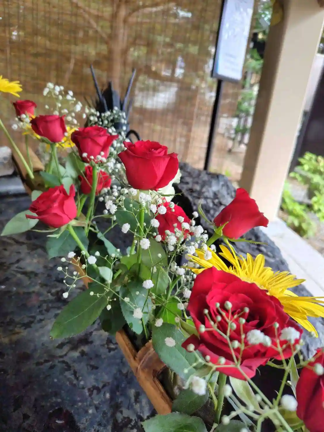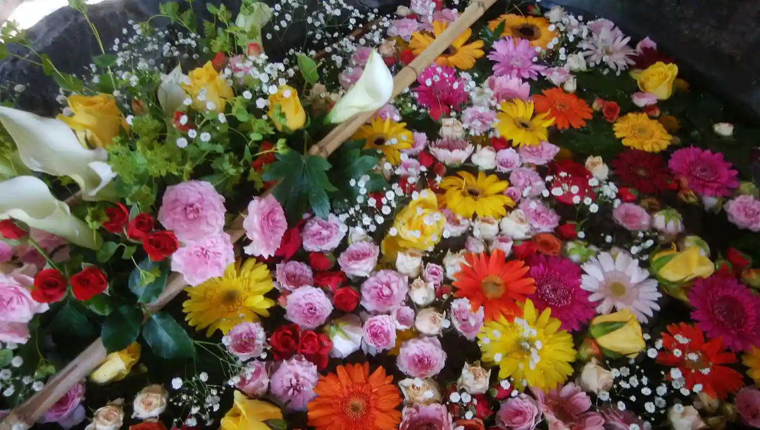 当社は今回バラを主とした赤系統の花で飾っております。