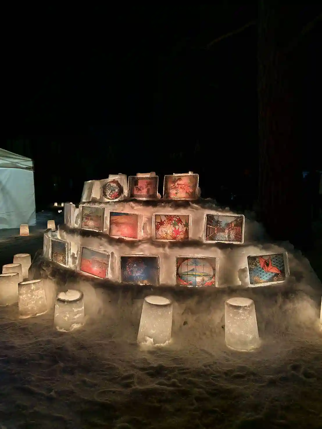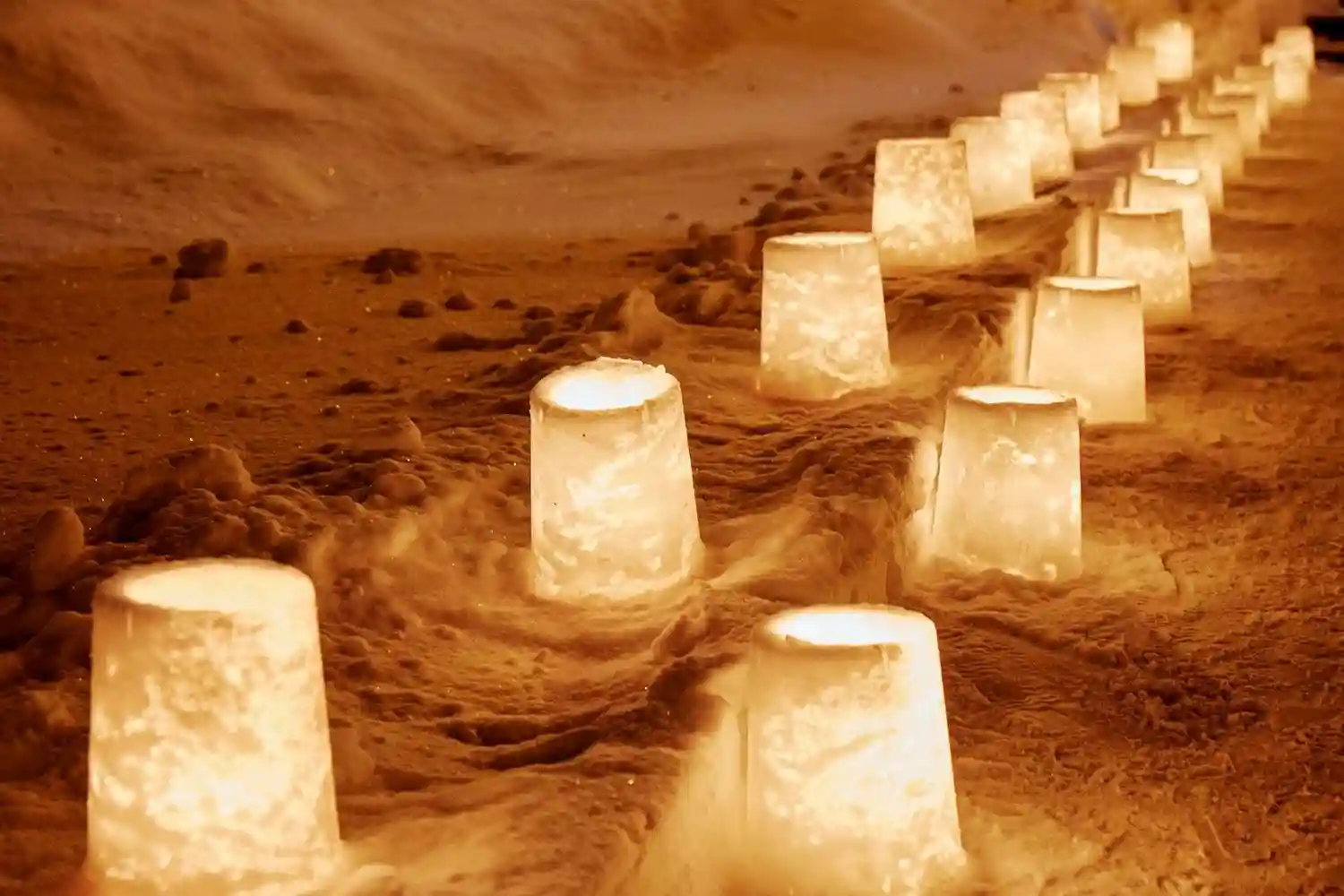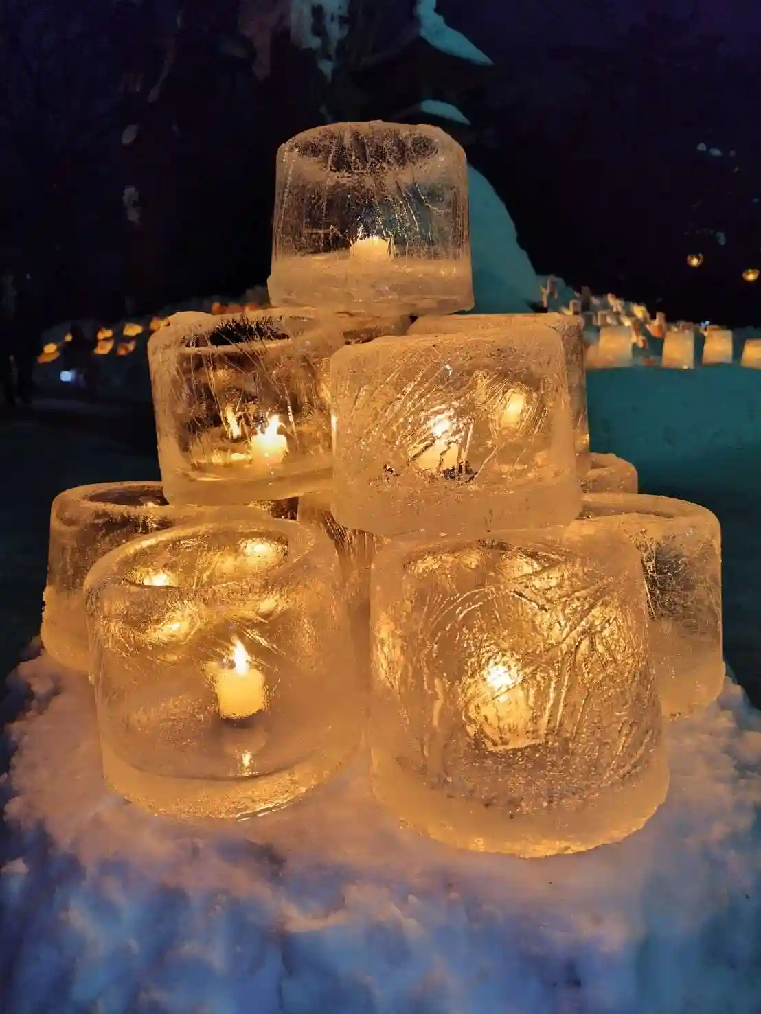 本日16〜18時のみの雪灯りの灯籠