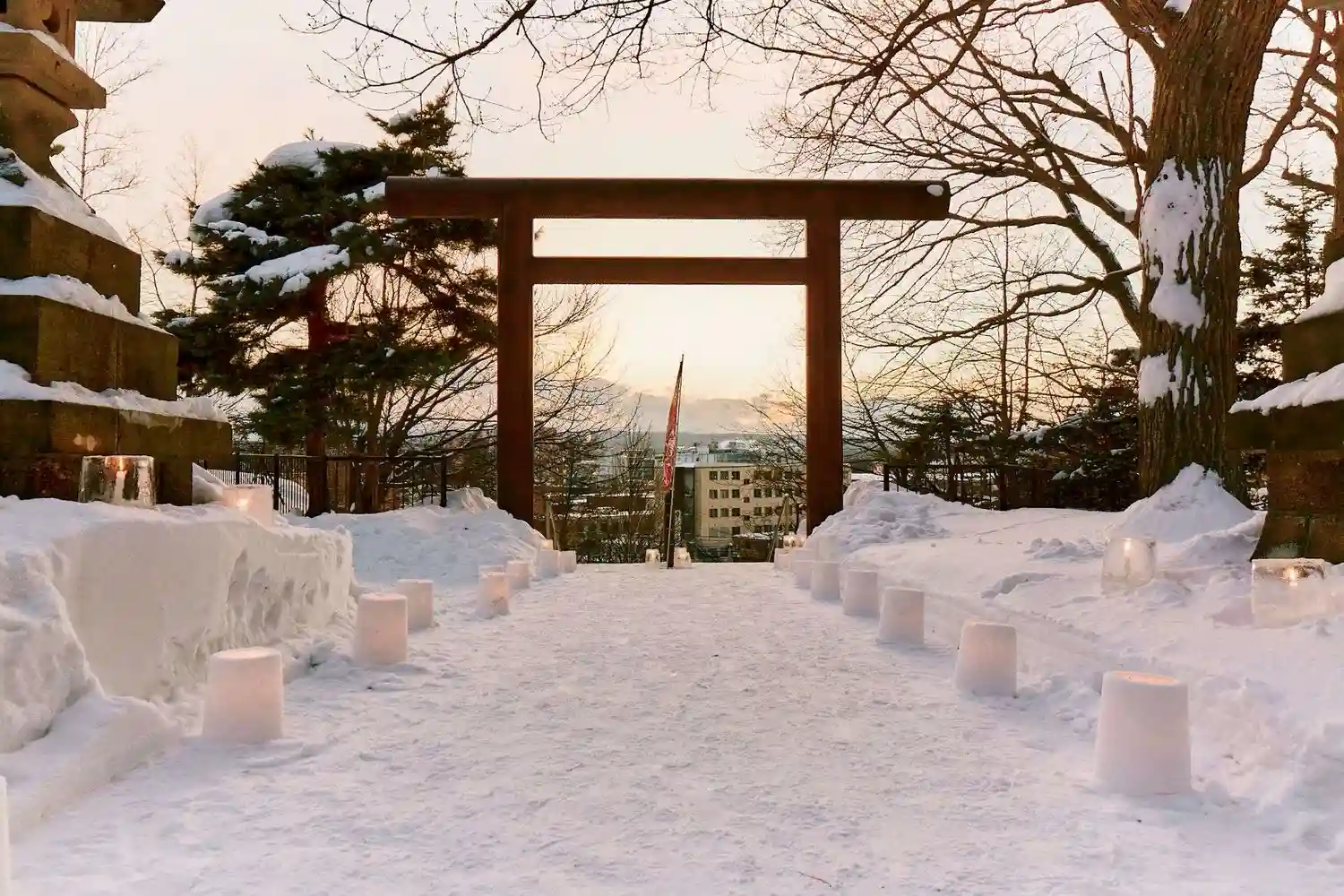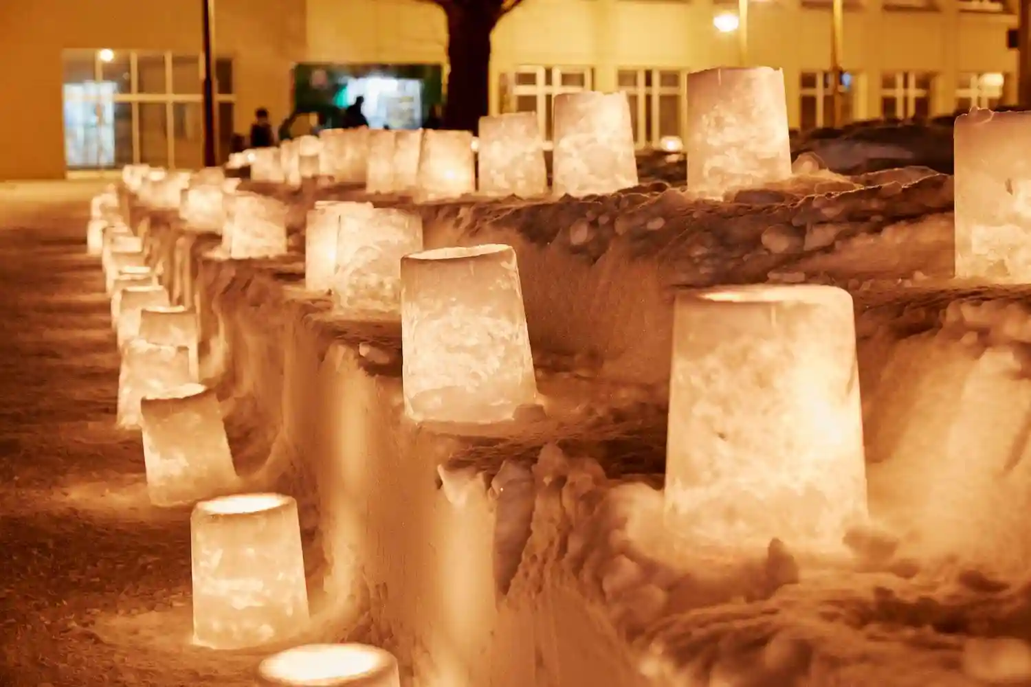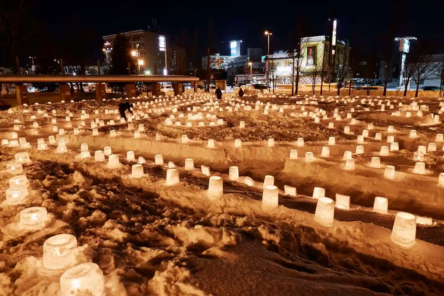 本日16〜18時のみの雪灯りの灯籠
