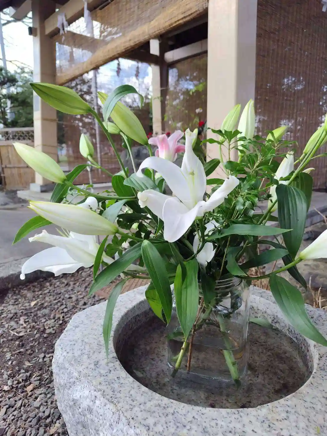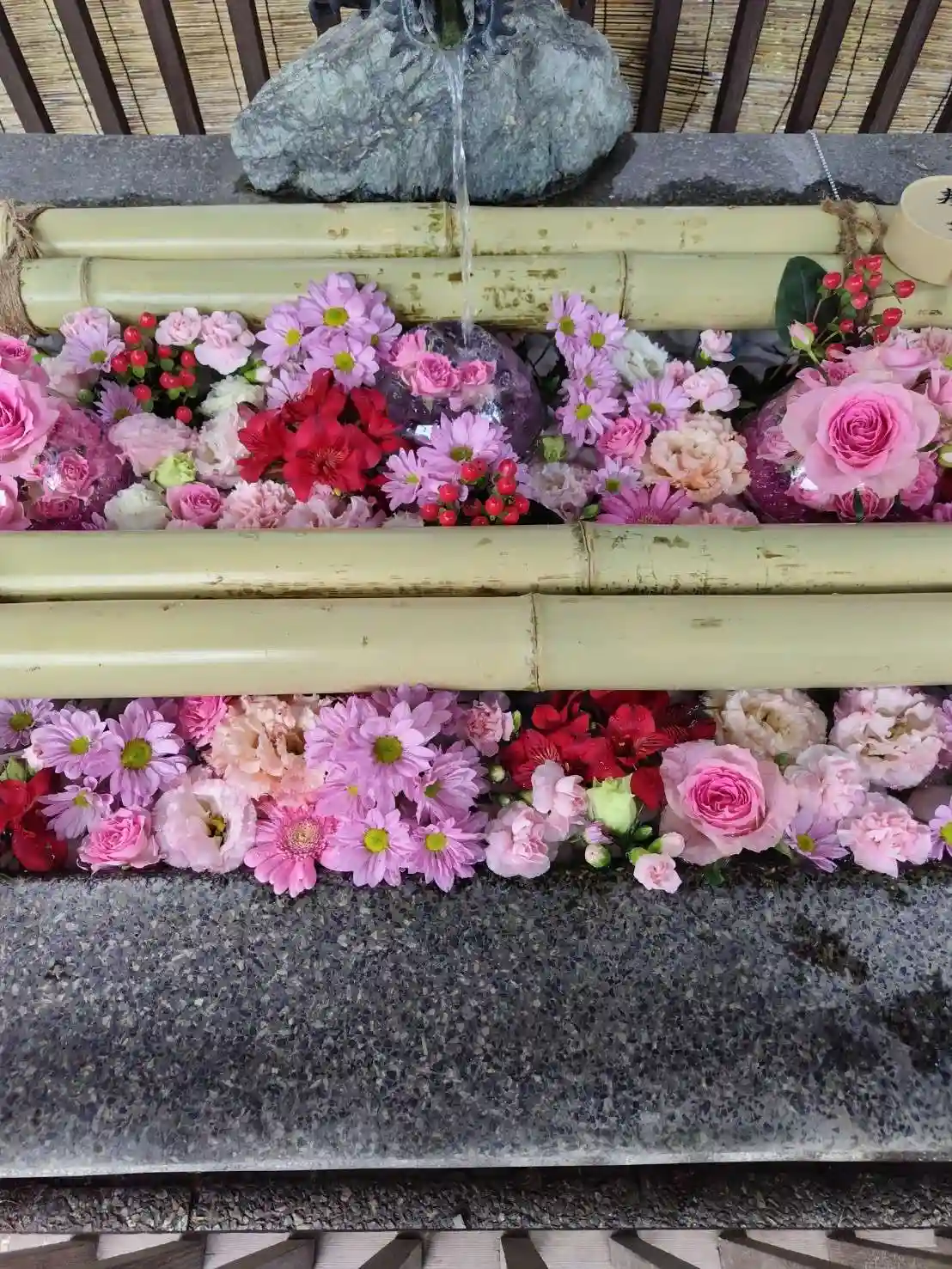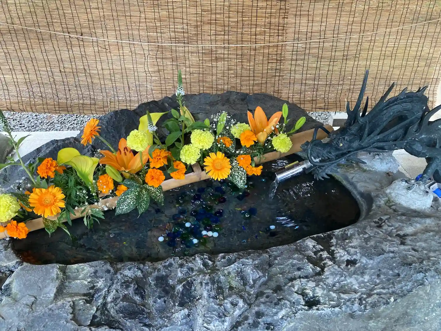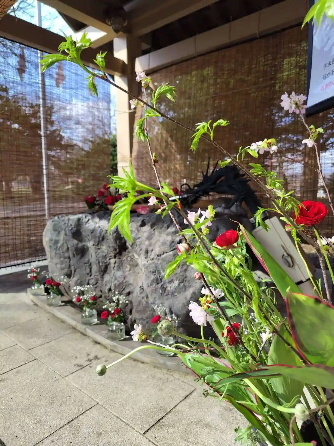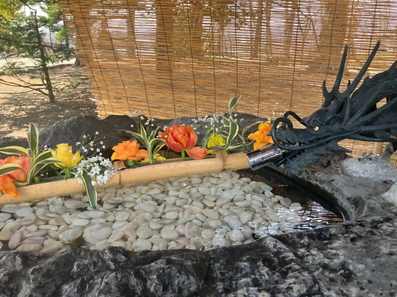 手水の花を入れ替えております。