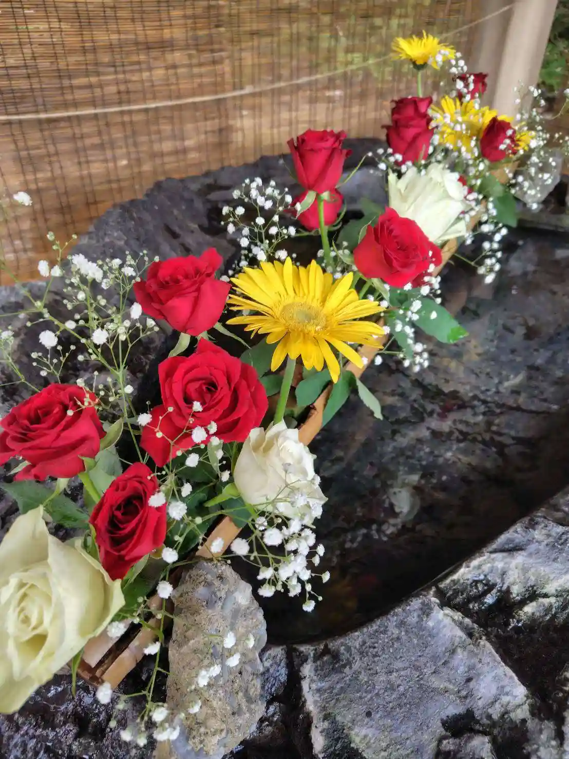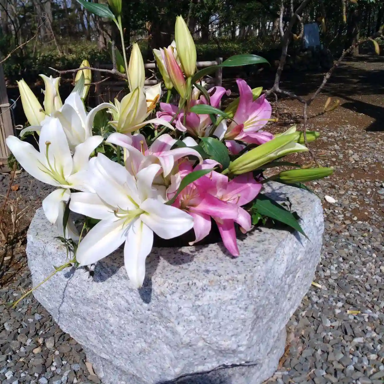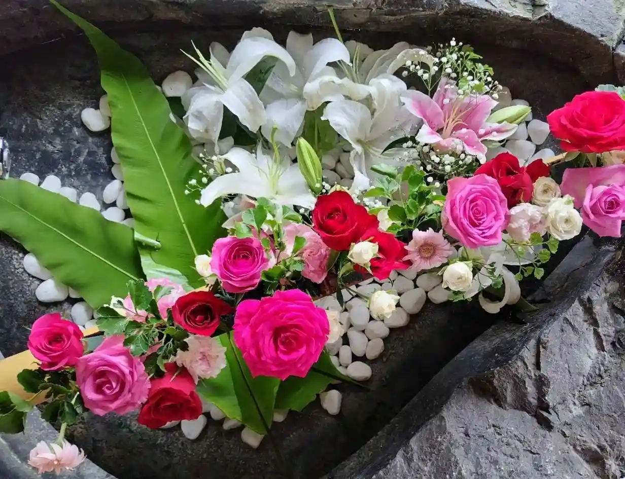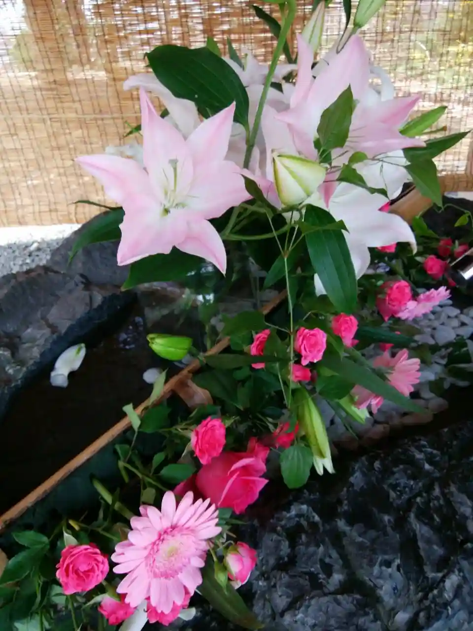 手水の花を入れ替えております。