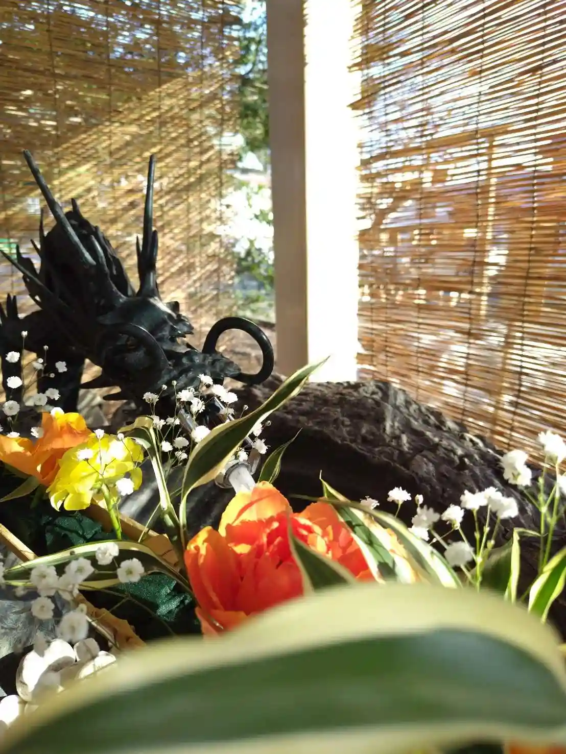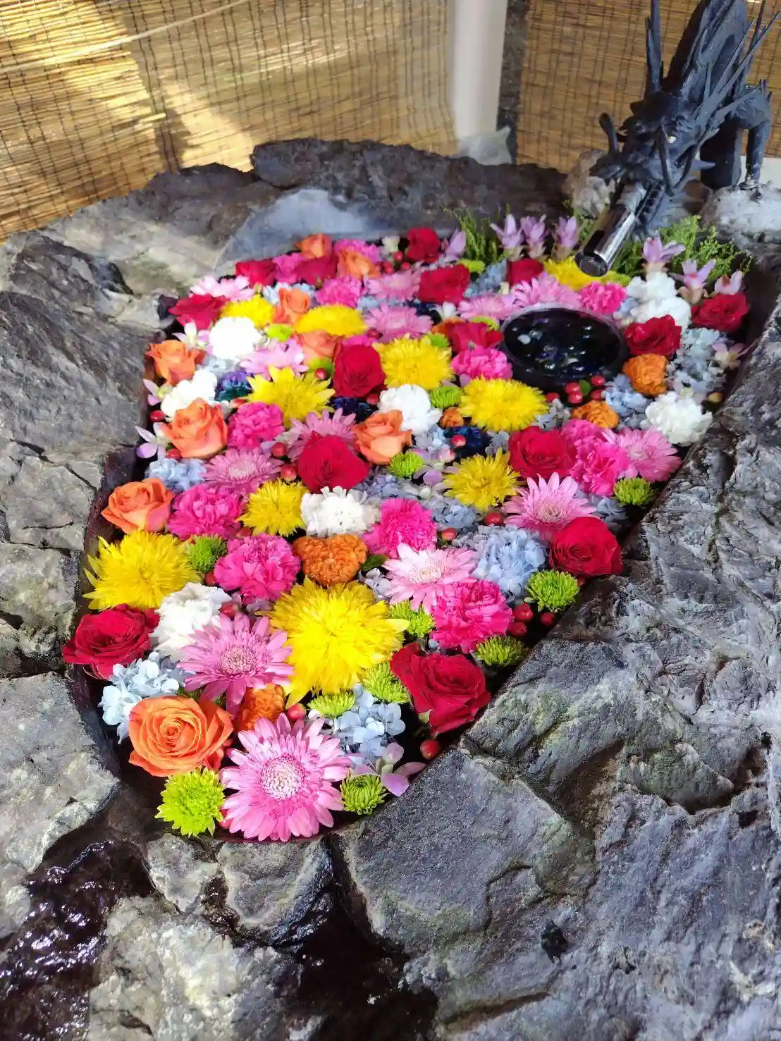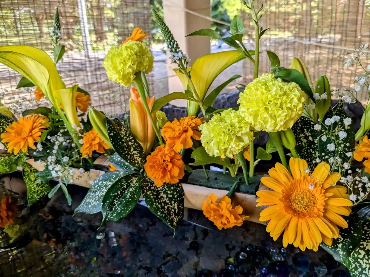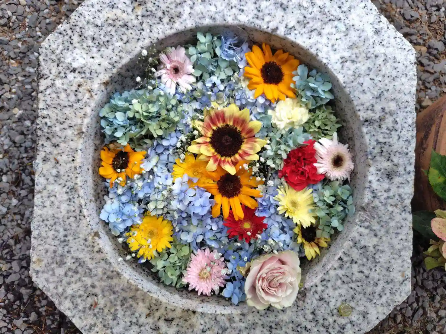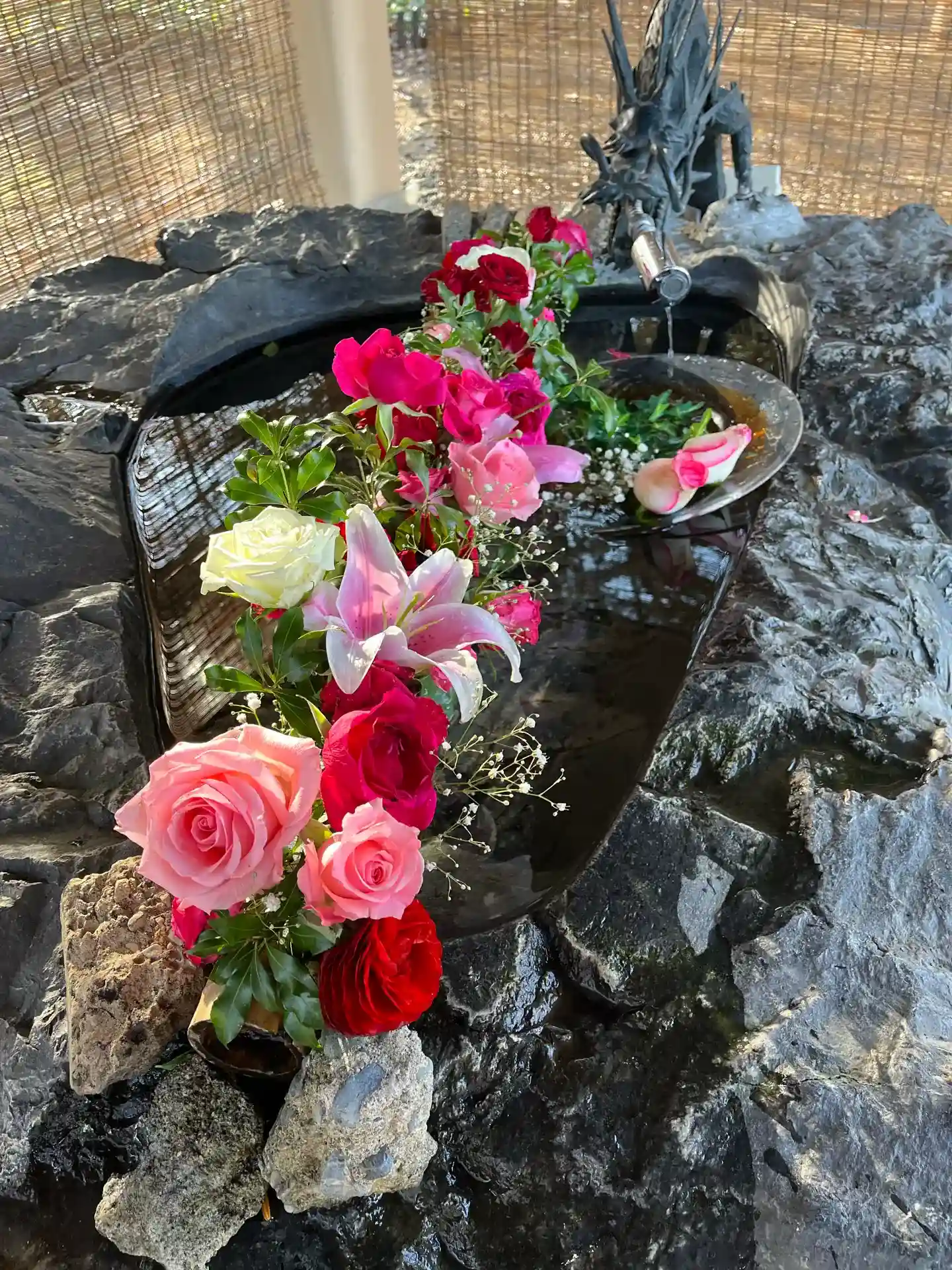手水の花を入れ替えております。