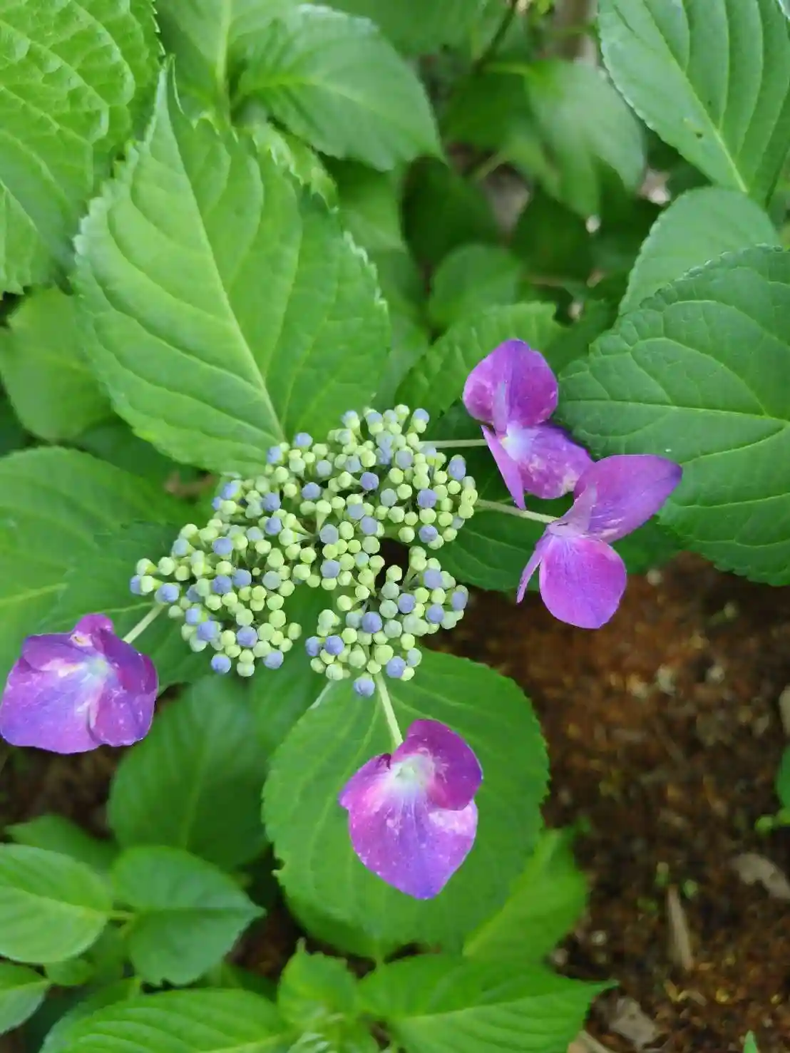 桜並木通り(旧国道)のアジサイが咲き始めています。