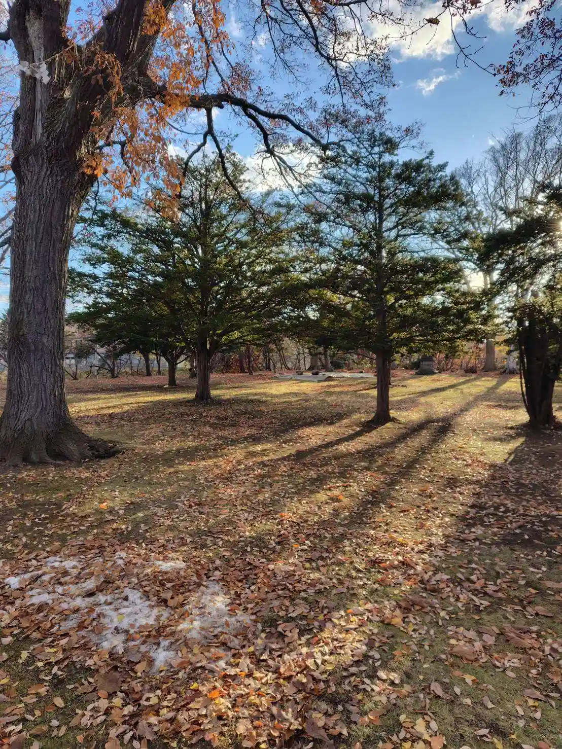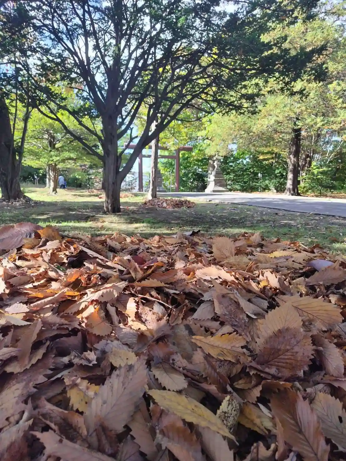 参道には見上げるような高さの木が並んでいるのですが、こちらは空も開けているので、広々と感じます。
