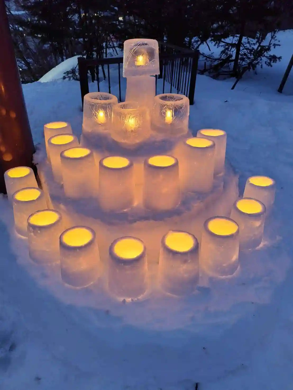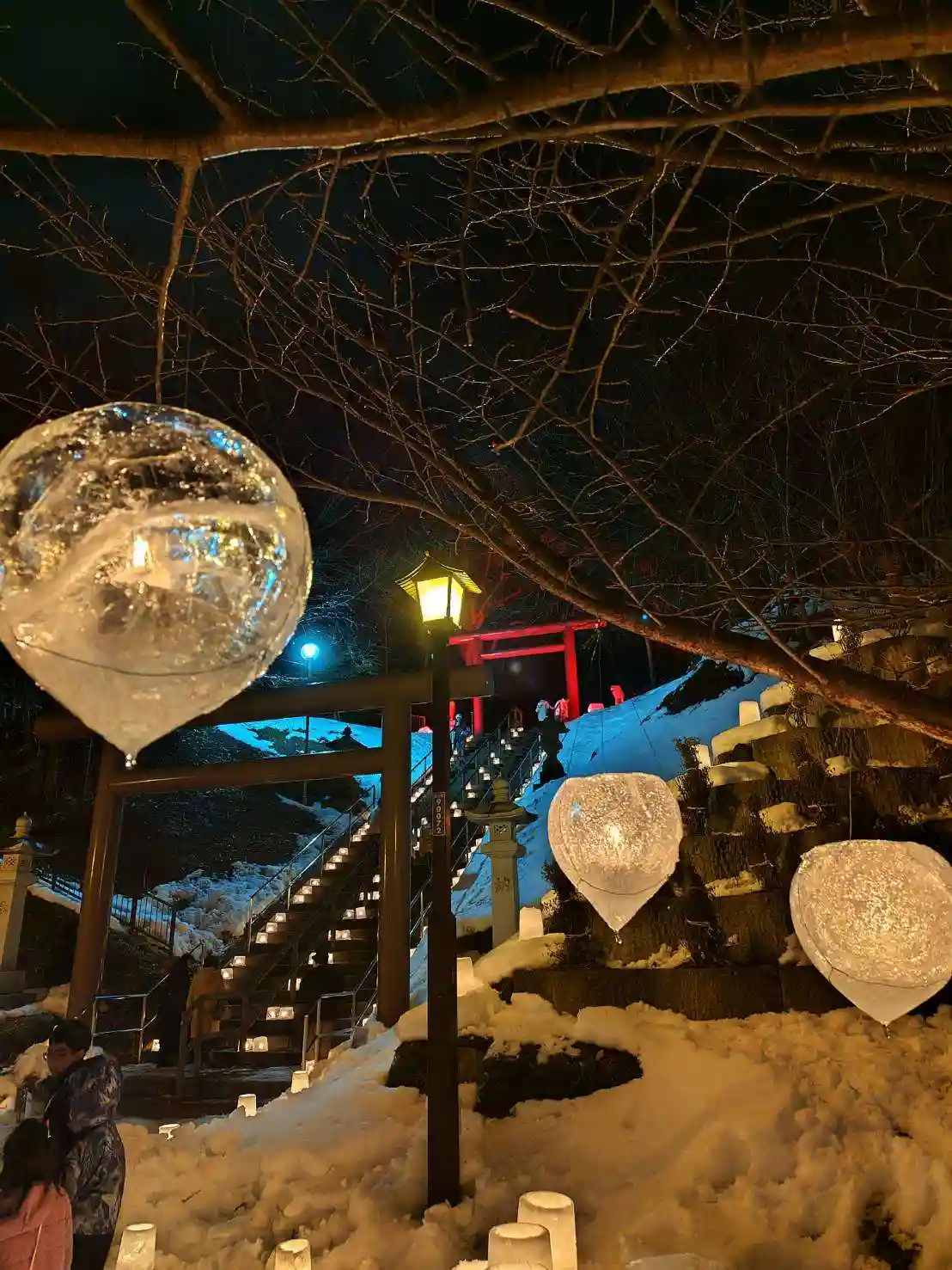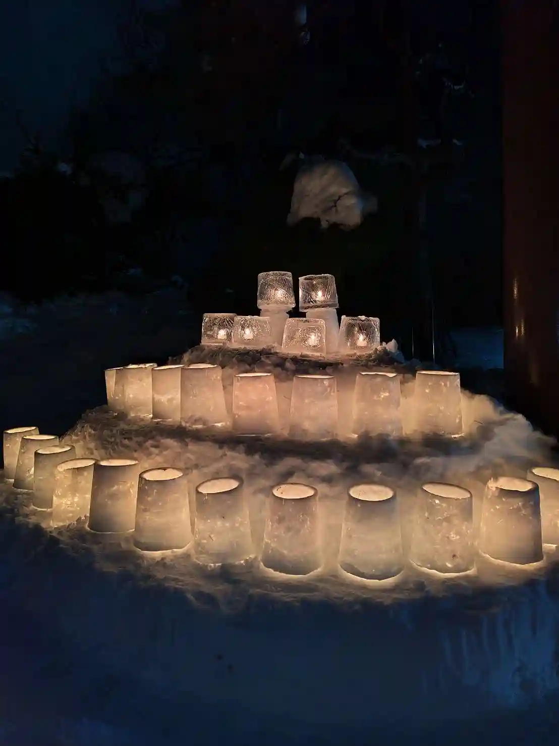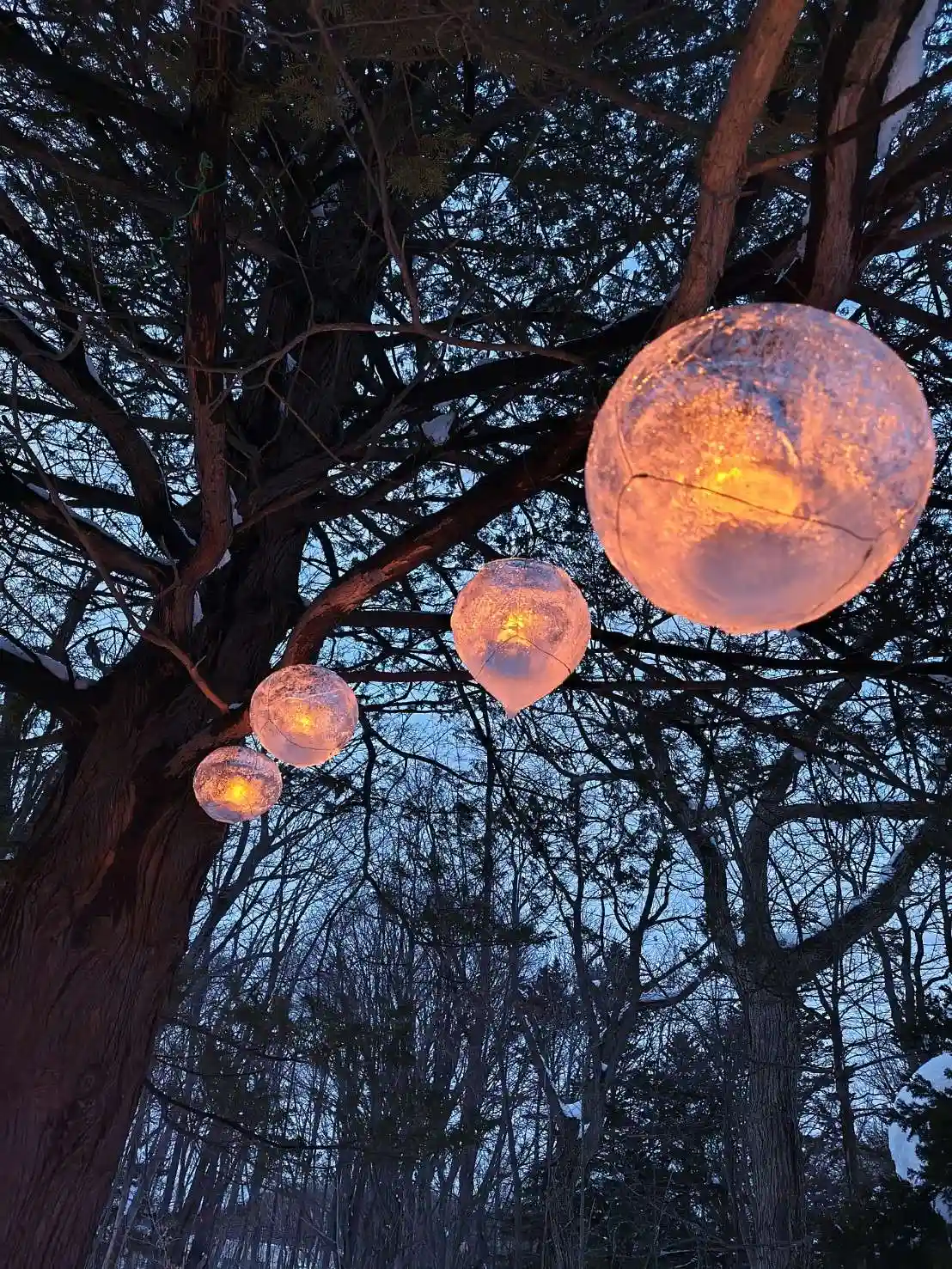 木に氷の灯籠