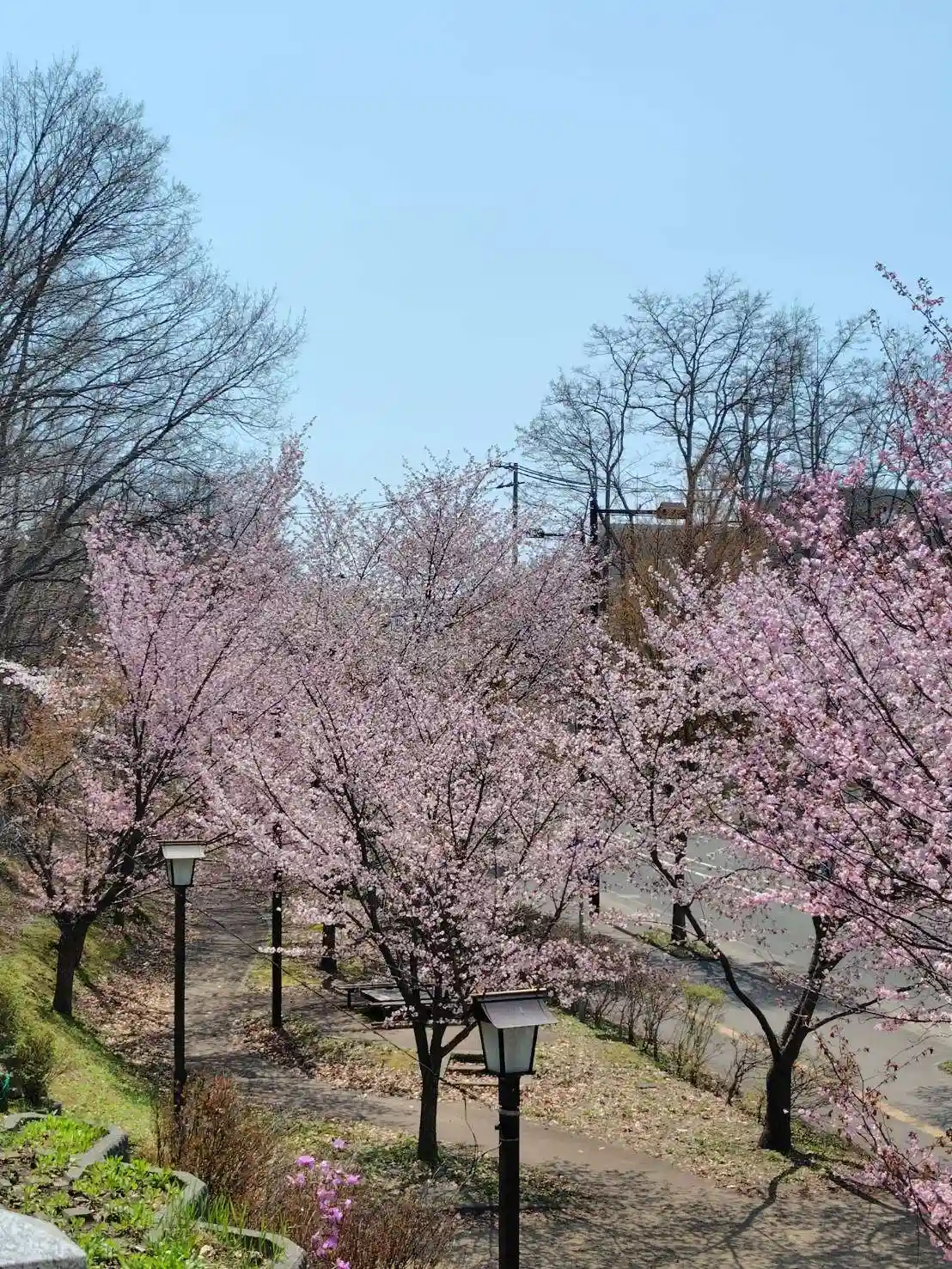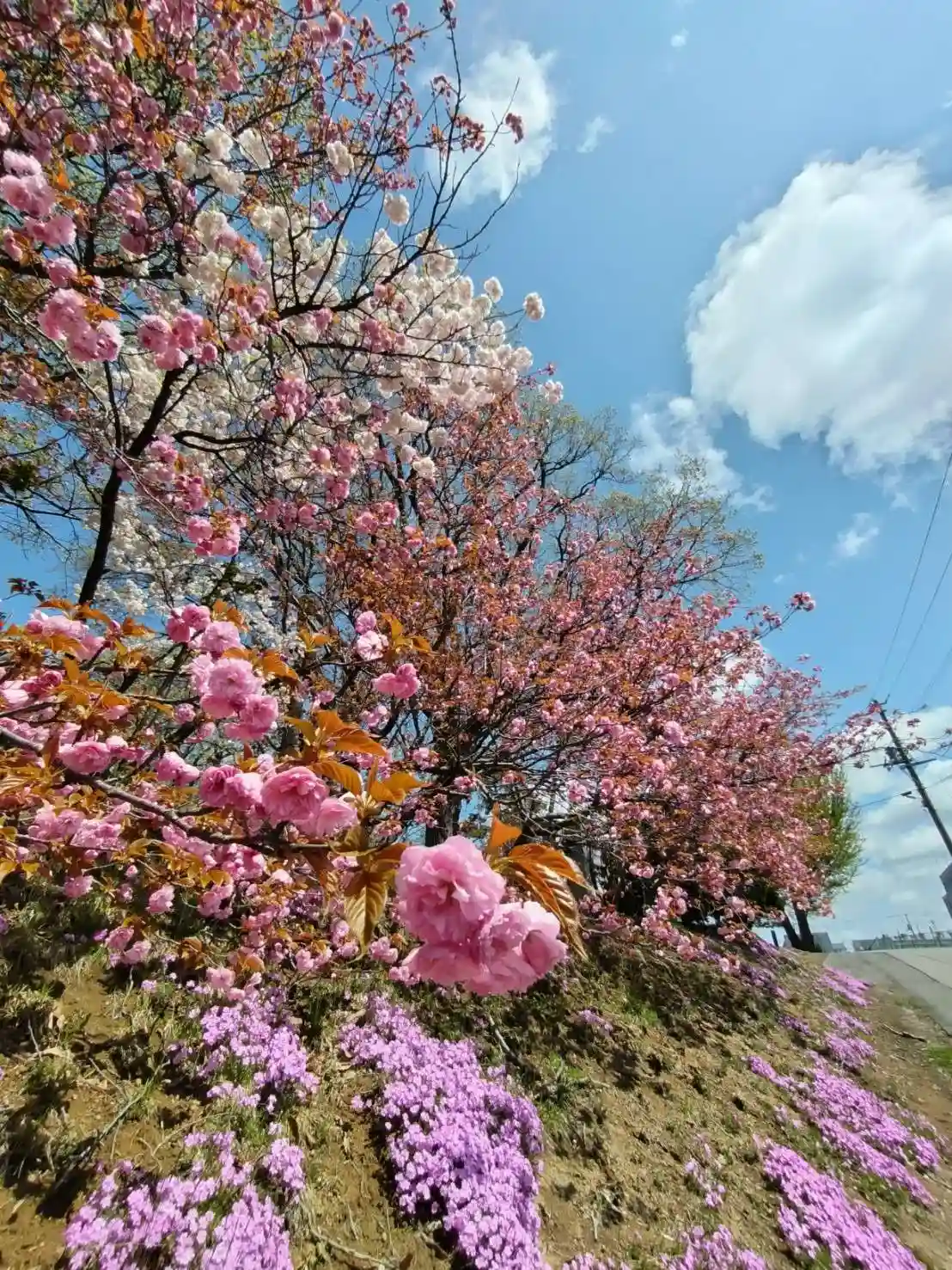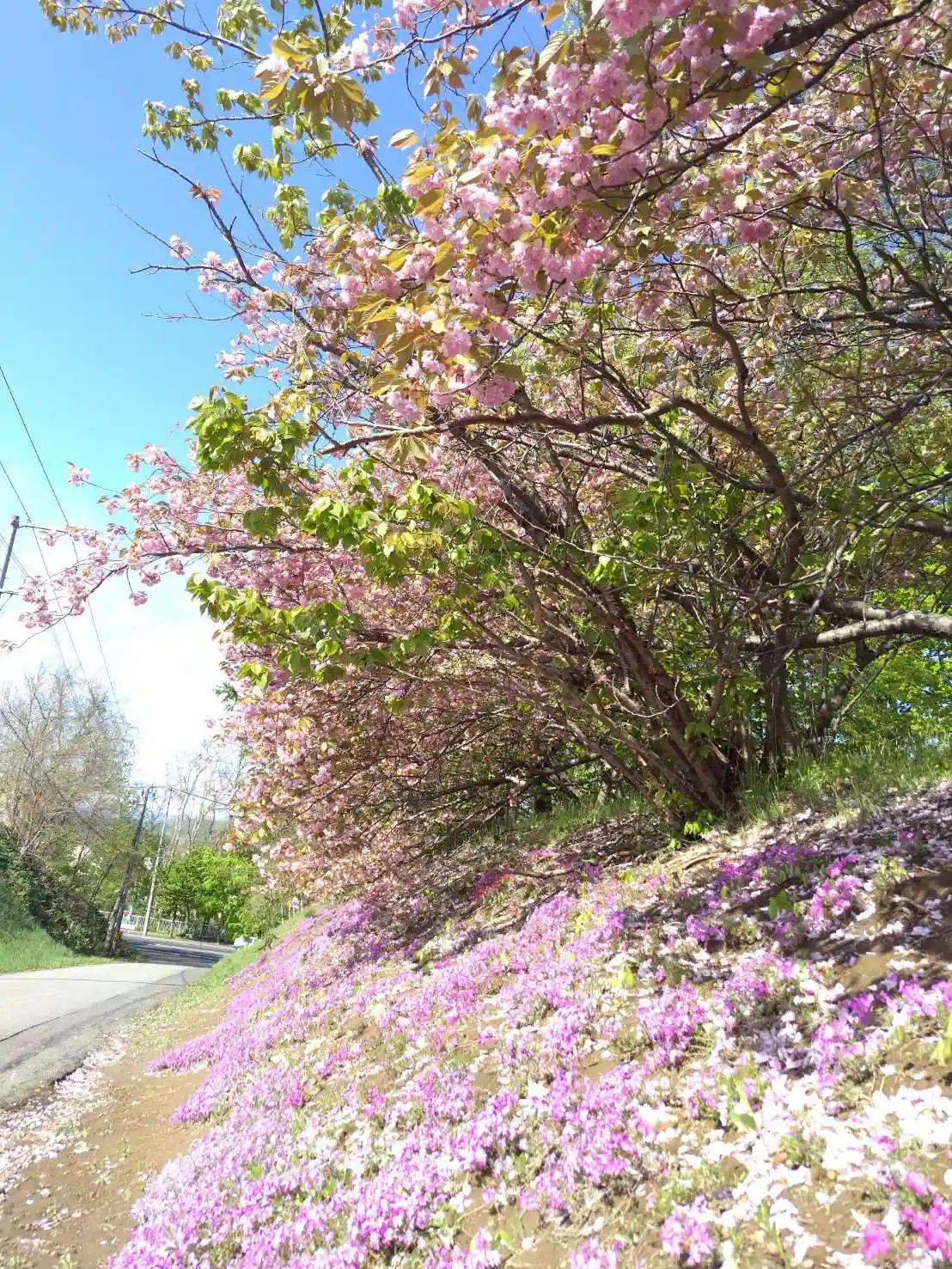 「あしりべつ桜並木通り」のエゾヤマザクラが見頃となっております。