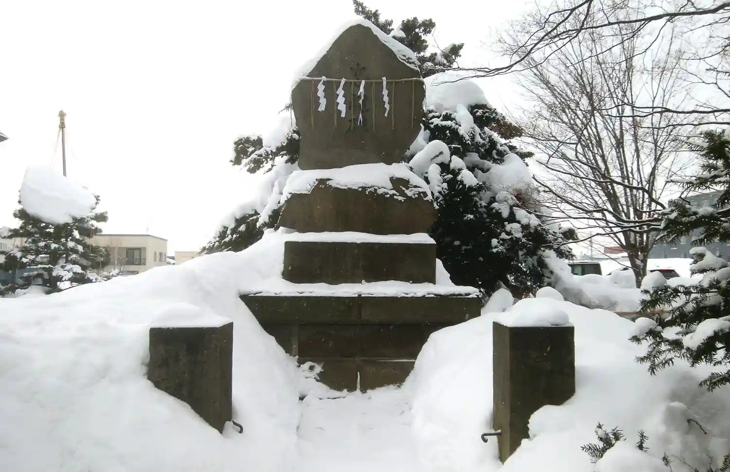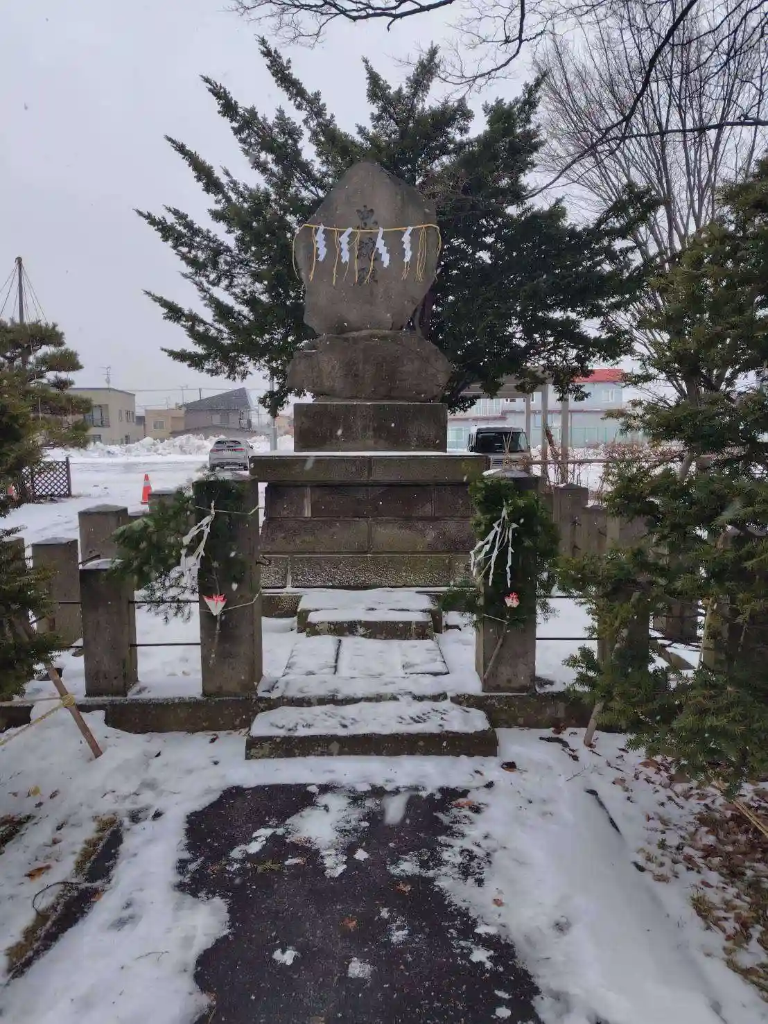 忠魂碑も雪でおおわれています