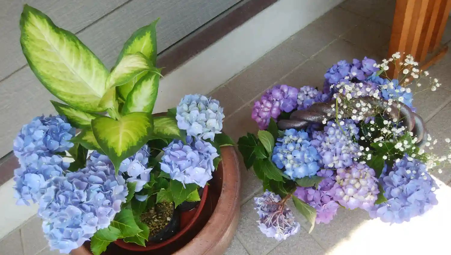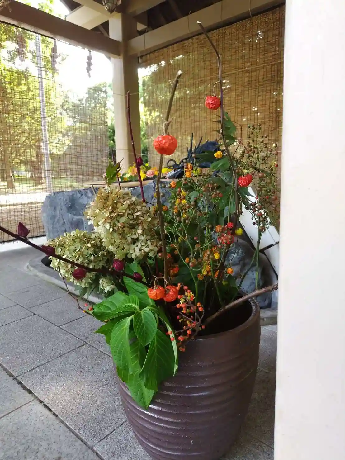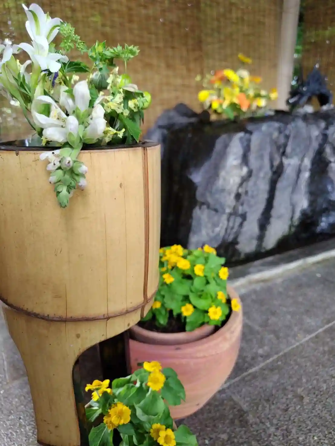 横には寄せ植えも