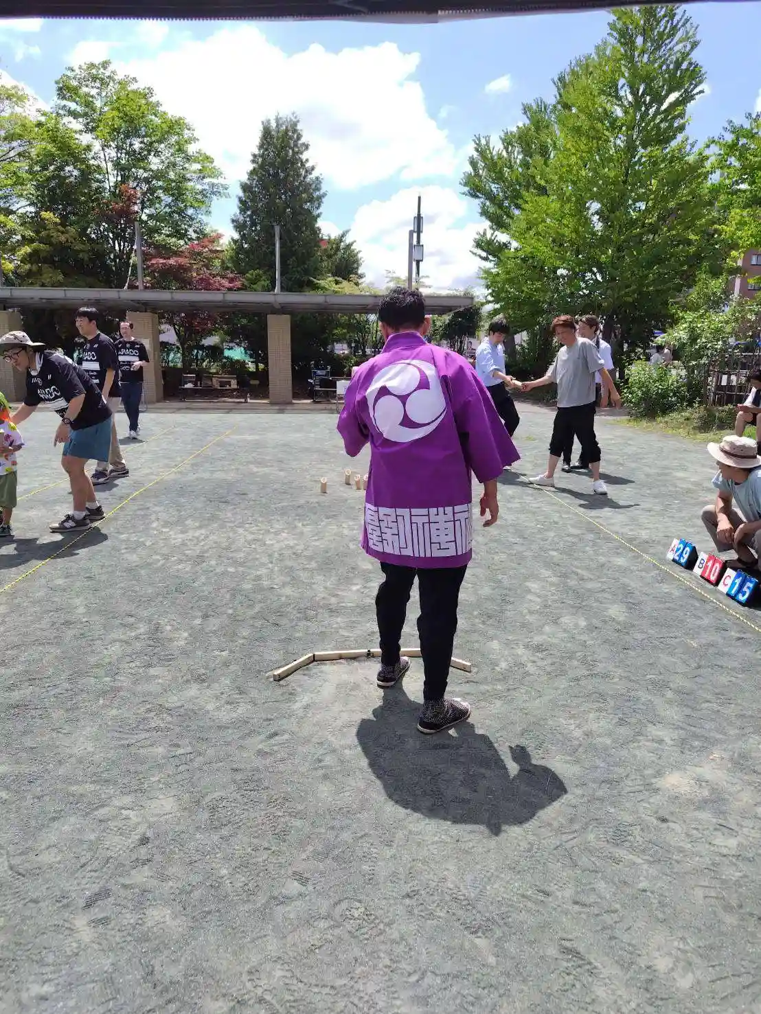 奥の人混み、凄いです。区役所側の参道と土俵などがある広場を中心に露店が出ていて、人の流れが変則的。