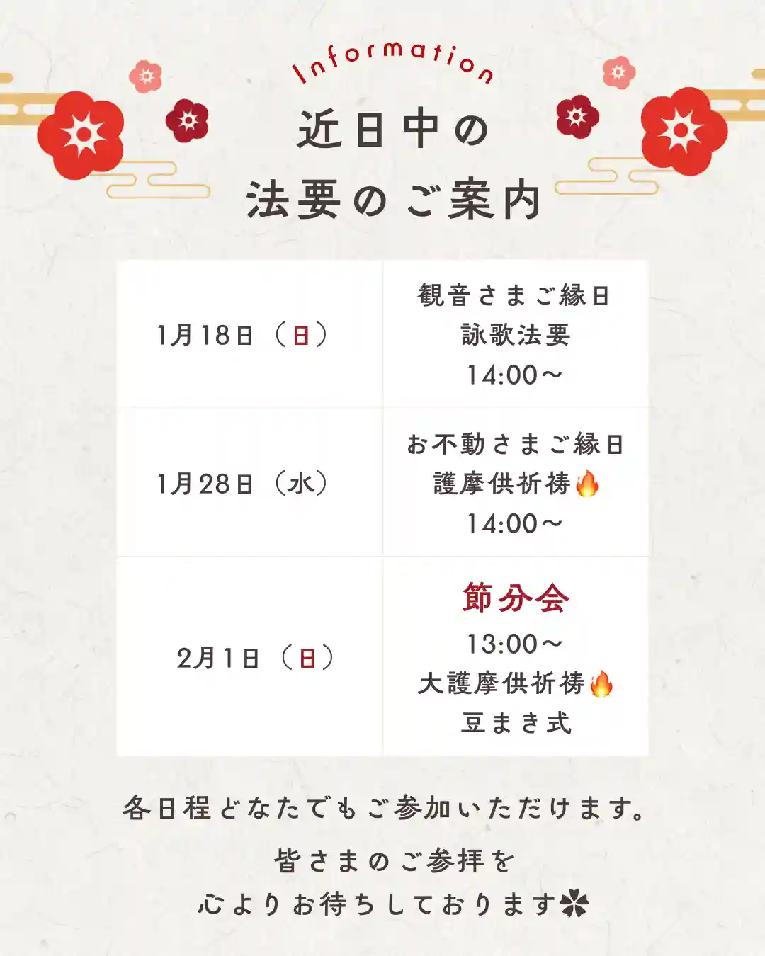 節分会のお知らせは日を追って詳しく掲載させていただく予定ですので、是非チェックしていただけましたら幸いでございます。