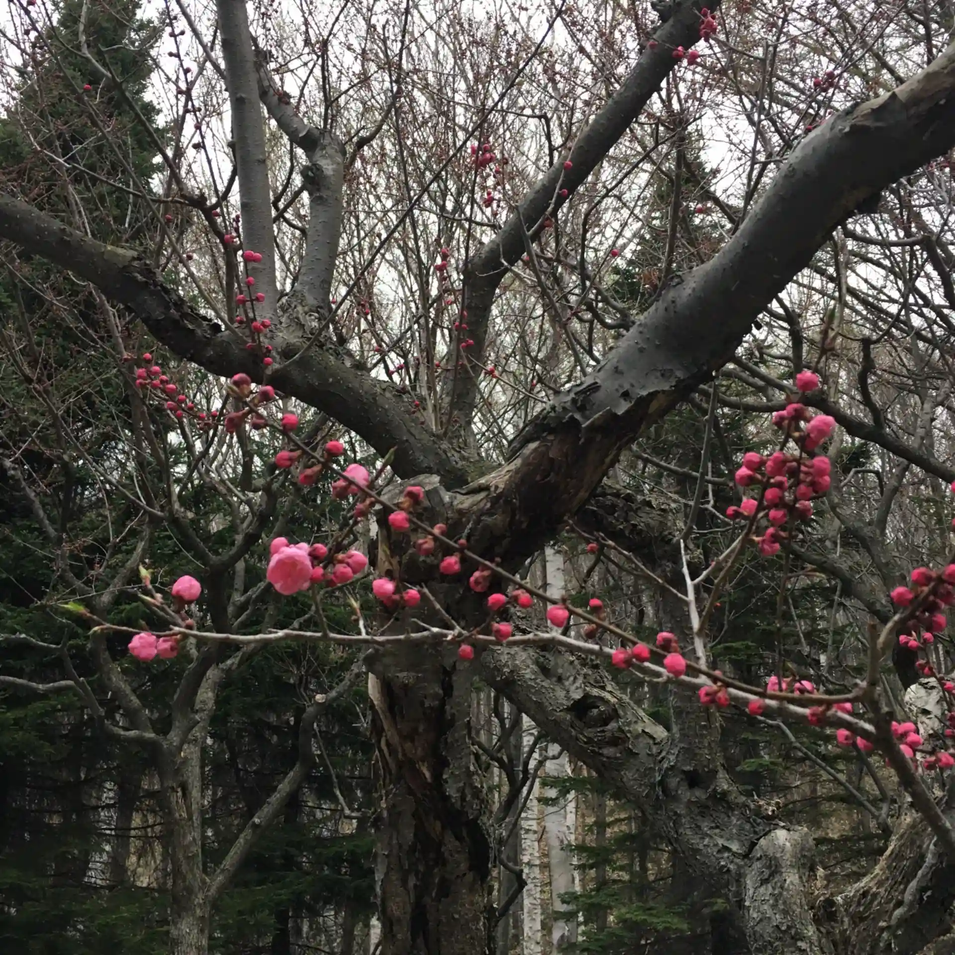梅は一昨日に開花したばかり。