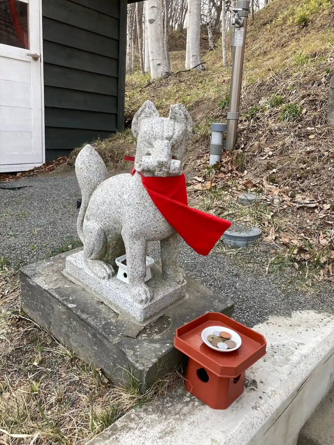 黒猫が休みに来る清田稲荷神社へ参拝。今日は運良く黒白ブチの猫ちゃんが出迎えてくれました。