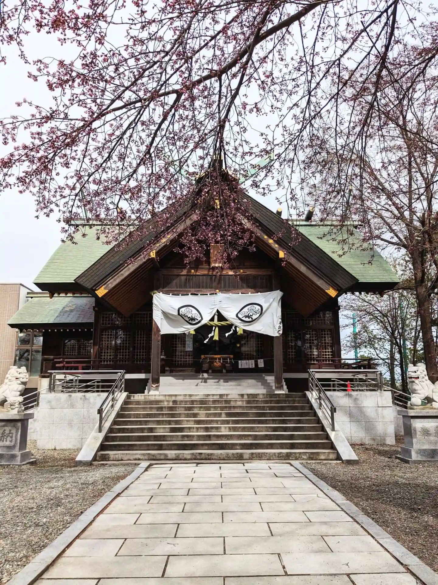 新さっぽろ駅から徒歩で向う。ゆっくりと歩いて、約15分くらいで到着。正門からではなく、横からお邪魔する形となった。参拝後は正門に向かって歩くが、門の近くに咲いてある桜🌸の花が風に揺られて舞い落ちてきて、一瞬だが時が止まった気がした。
