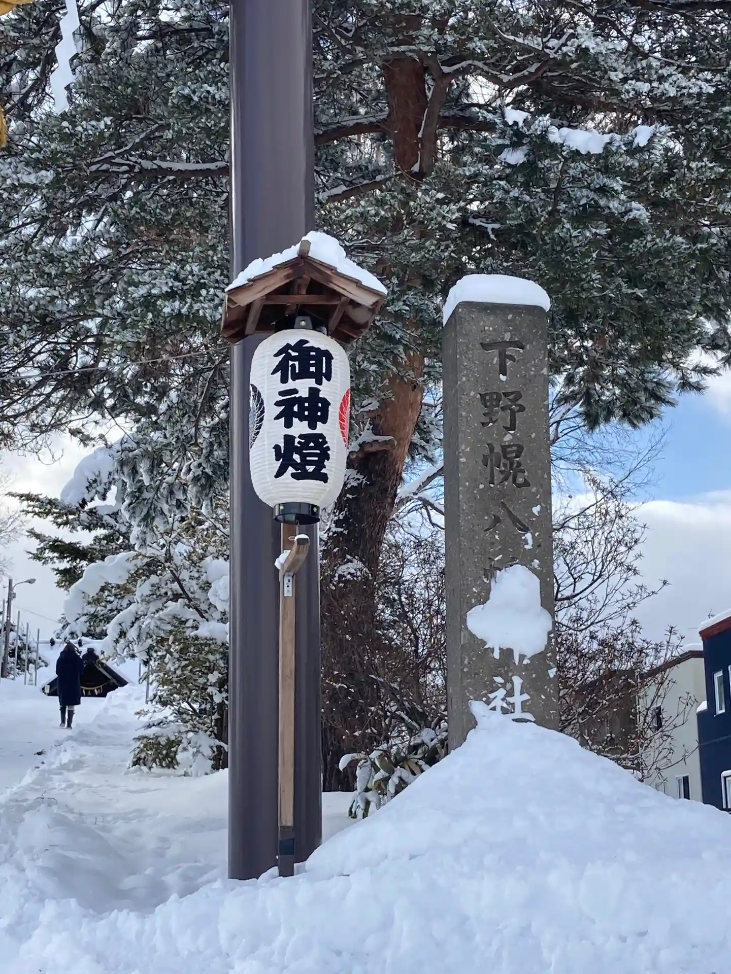 雪で隠れてしまっていますが、社号標は下野幌八幡神社となっていました。