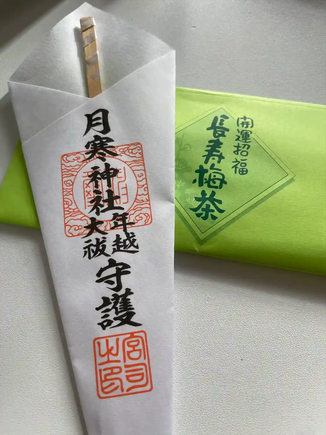 授与品はお札と梅茶です。