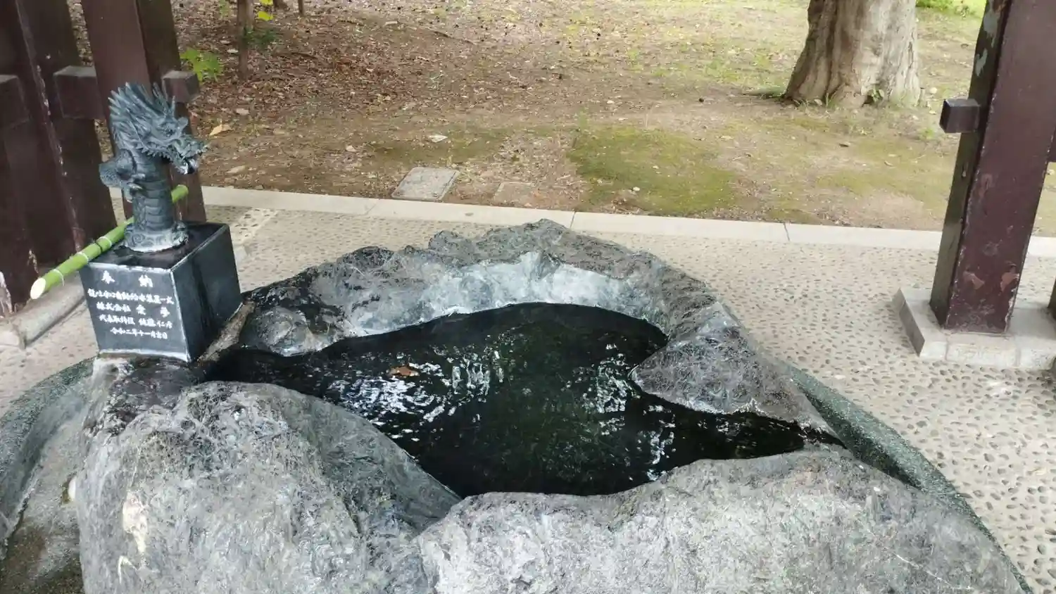 新しく龍の口になった手水舎を覗いたら先客の烏さんがお水を飲んでいらしたので…💦