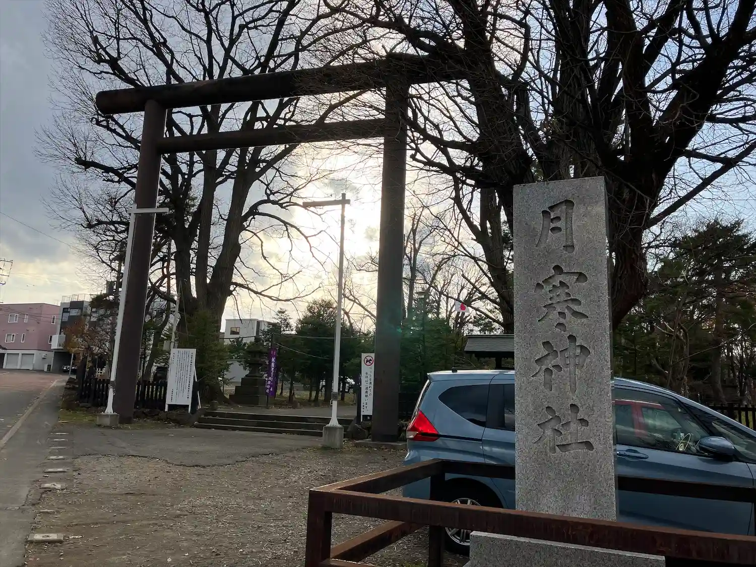 駅から歩くこと数分、月寒神社への標識が目に入りますが