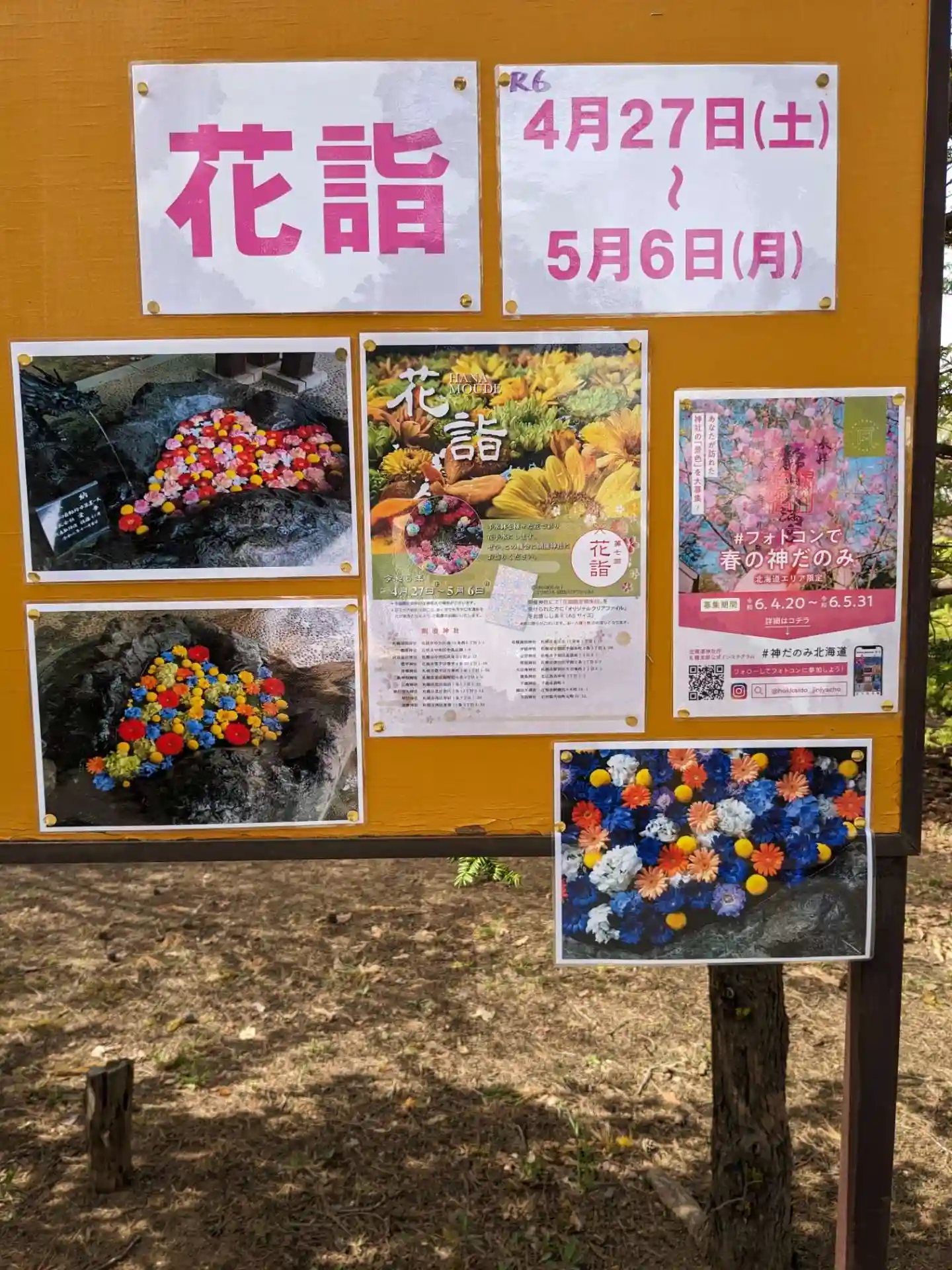 ふと横の柱を見ると今年春に開催予定で延期になっていた花詣開催のお知らせが貼ってあって