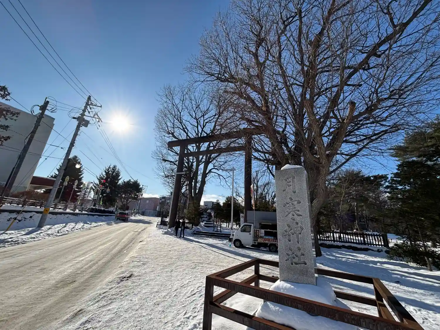 月ではなく太陽に照らされた月寒神社。