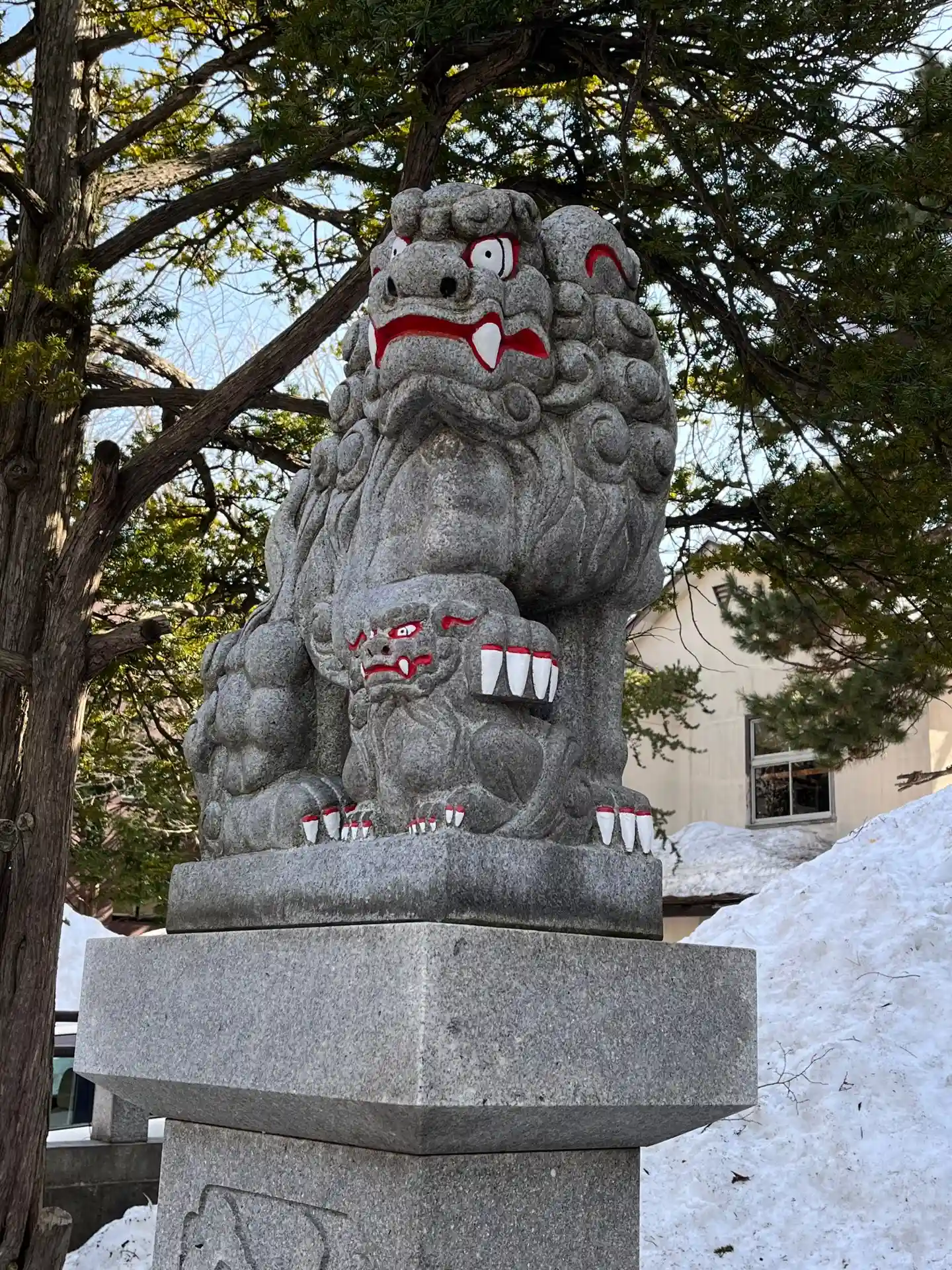なんとも鮮やかな狛犬さん。