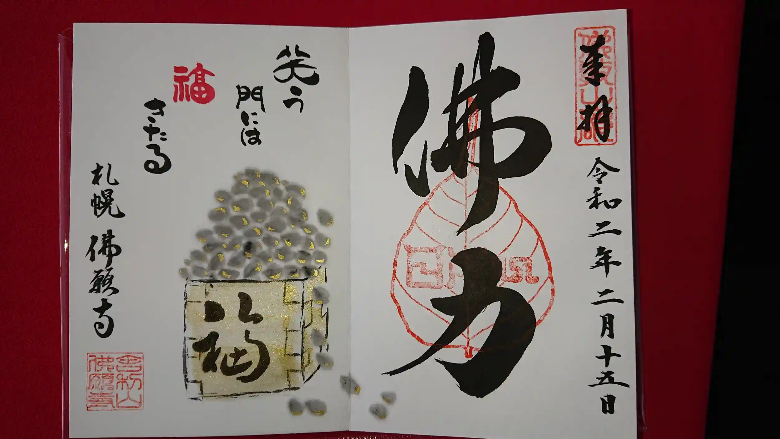 二月限定御朱印の豆の色が墨絵になっているもの、今年の書き置き御朱印「楽土」も拝受いたしました。