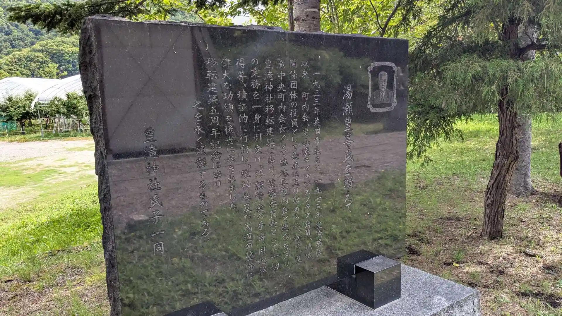 定山渓温泉へと向かう途中にある清勝寺さんの裏にありました。なんだかヒグマが出そうな所でちょっと怖い。豊滝地区の開拓が始まった頃に建てられ平成八年にこちらへ移転されました。境内には移転の際に中心となって貢献された湯瀬豊喜氏の記念碑があります。