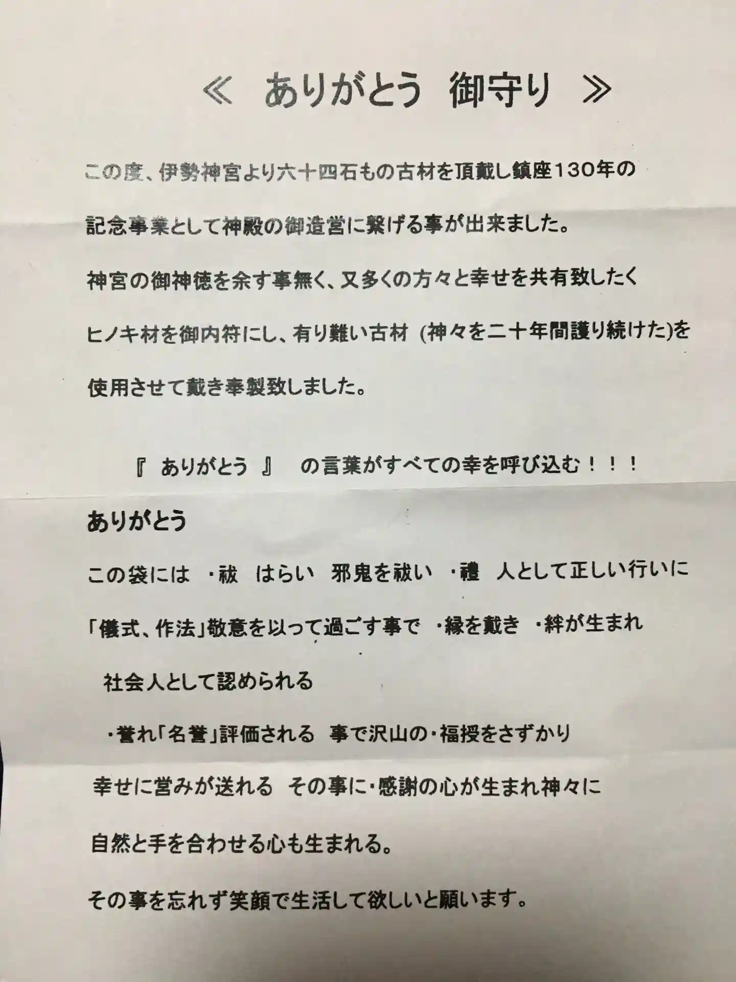 「ありがとう」と言う言葉に敏感な私はこのお守りと出会ってしまいました。