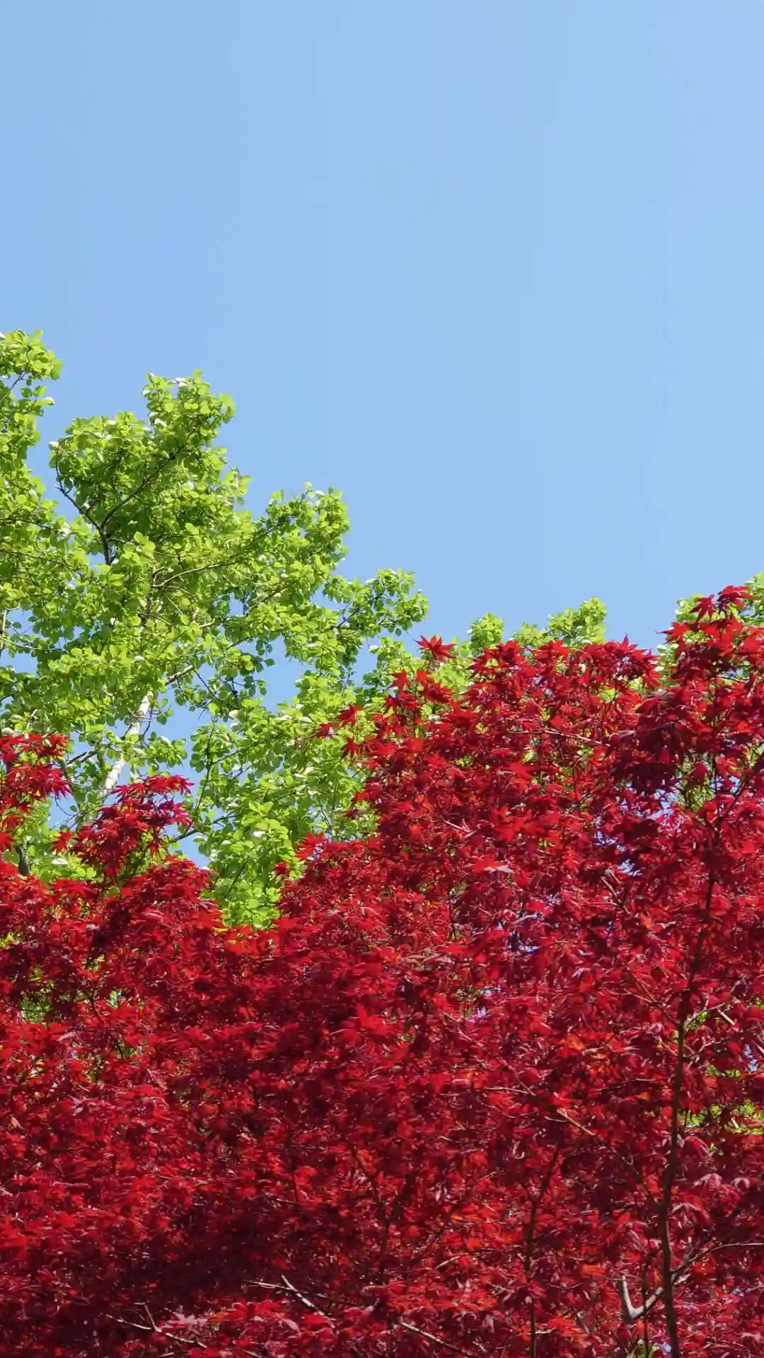 八重桜やモミジとのコントラストがとても綺麗です。