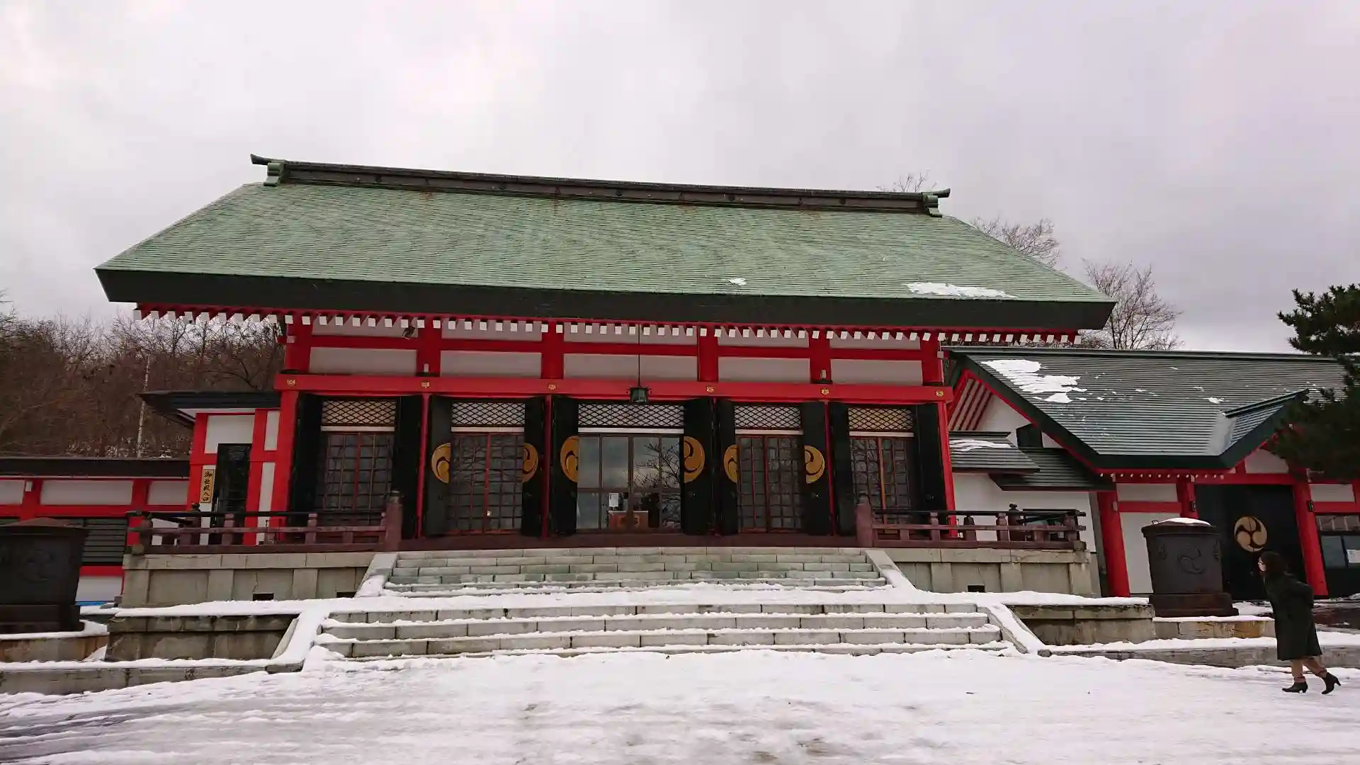 小樽総鎮守だけあって広い。一の鳥居を潜るとなだらかな上り、そこから石段が続きます。中途半端に雪が残り足元が不安でした。社殿へ向かう途中大きな社務所があり、小樽の文化財に指定されており、使用してないと思っていたところ、まだまだ現役でした。書き置きの御朱印とえぞみくじを戴きました。明治期の狛犬より大正期の狛犬の方が劣化していたのが不思議でした。