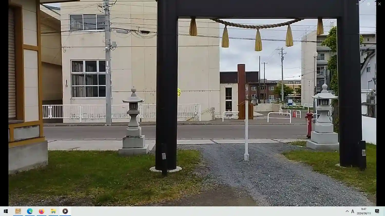 鳥居の先に見るのは小学校です