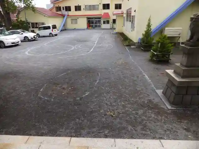 三度目のお参りでやっと写真を撮りました。境内と園庭が共有です。神社の境内に幼稚園があるのか、幼稚園の園庭に神社があるのか・・・。園児たちは神様がお友達のような近しい感覚で育っていくのでしょうね。