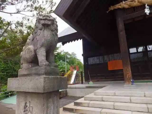 左の狛犬さん。後ろに滑り台。