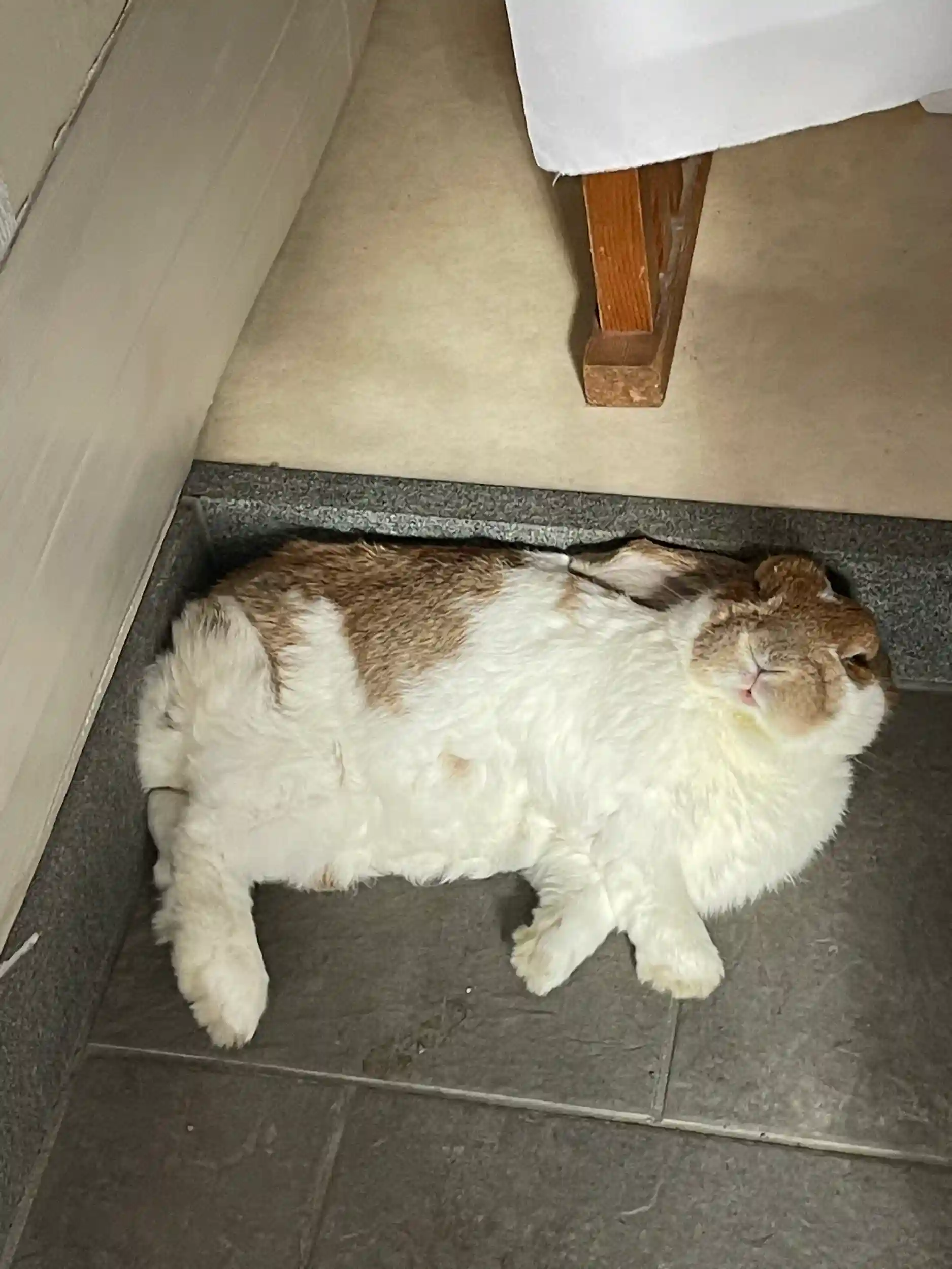 社務所内で、大きなウサギが出てきて寝転んでました!🐰