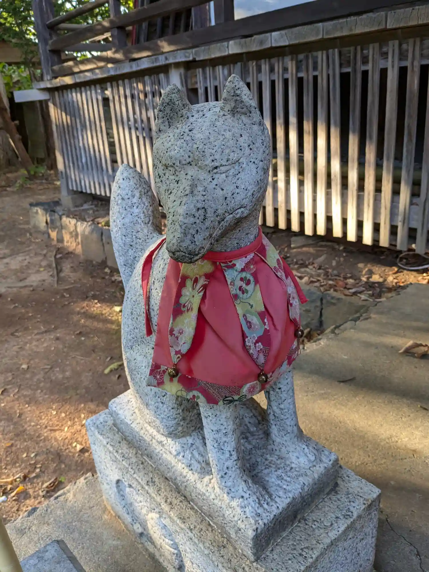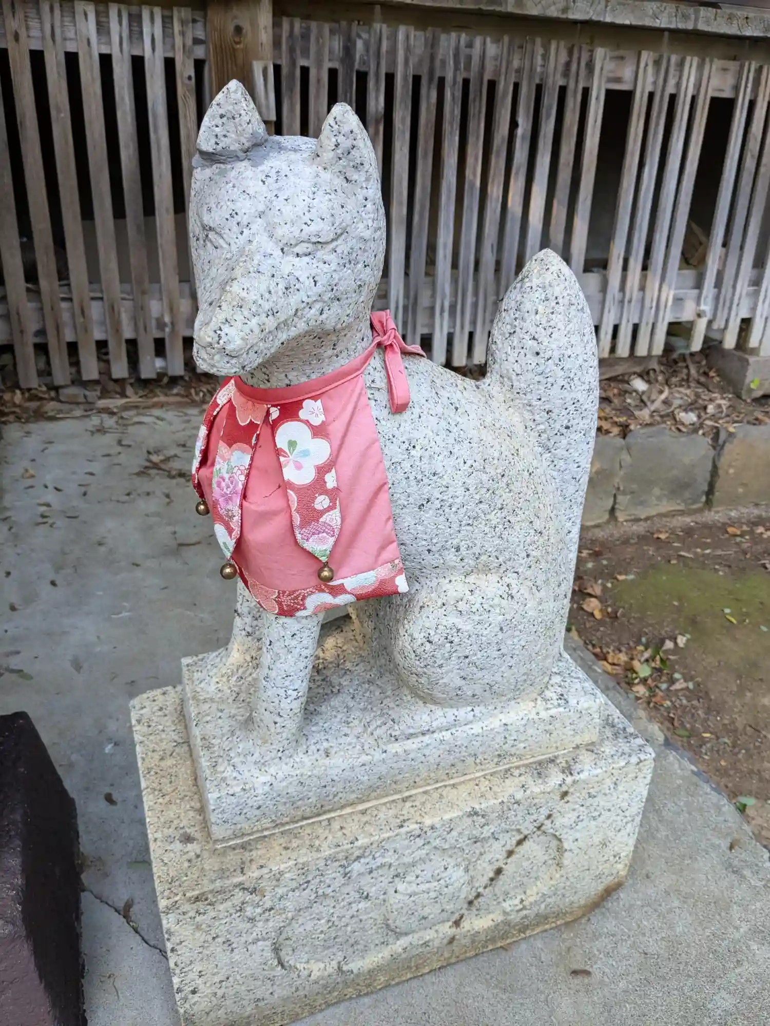 参道の狛犬さんとおそろいの前掛けです