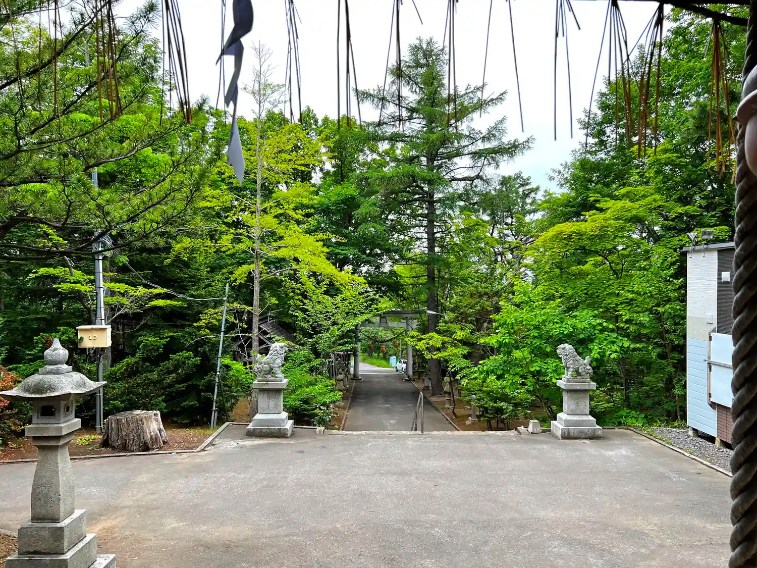 拝殿から振り返って境内全景。