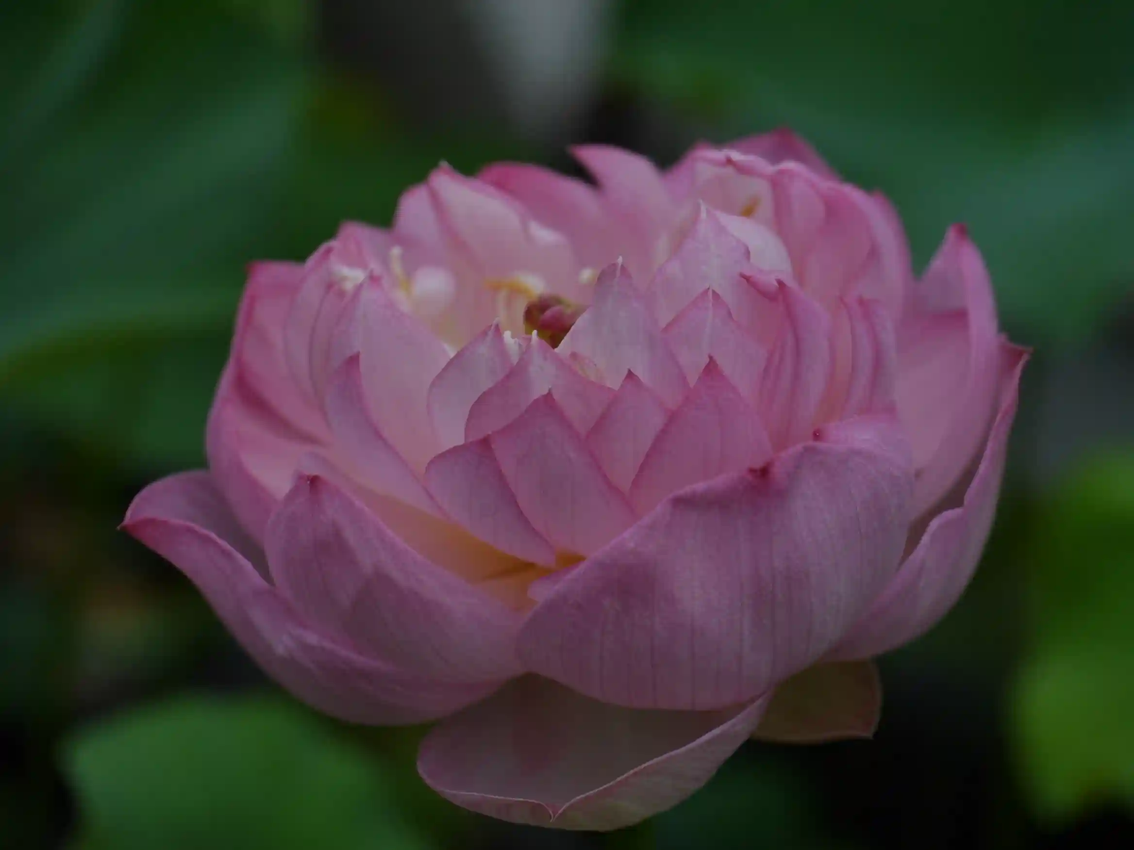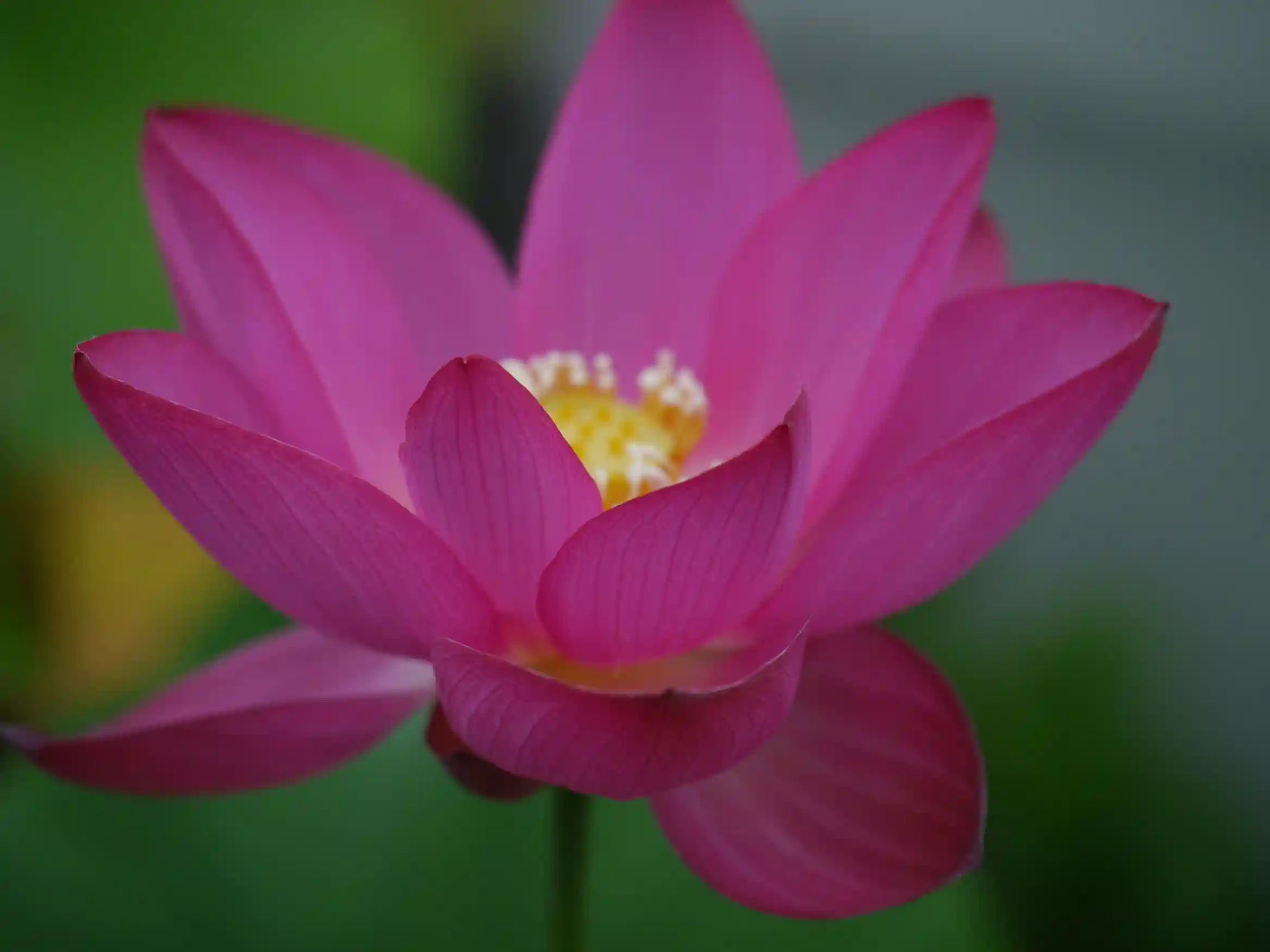 外にある睡蓮は雨に打たれていますが、温室内にある蓮は元気に咲いています。