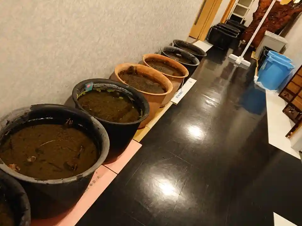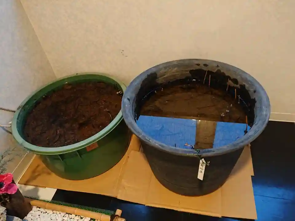 今月中旬以降、少しずつ作業していた蓮と睡蓮の越冬作業も