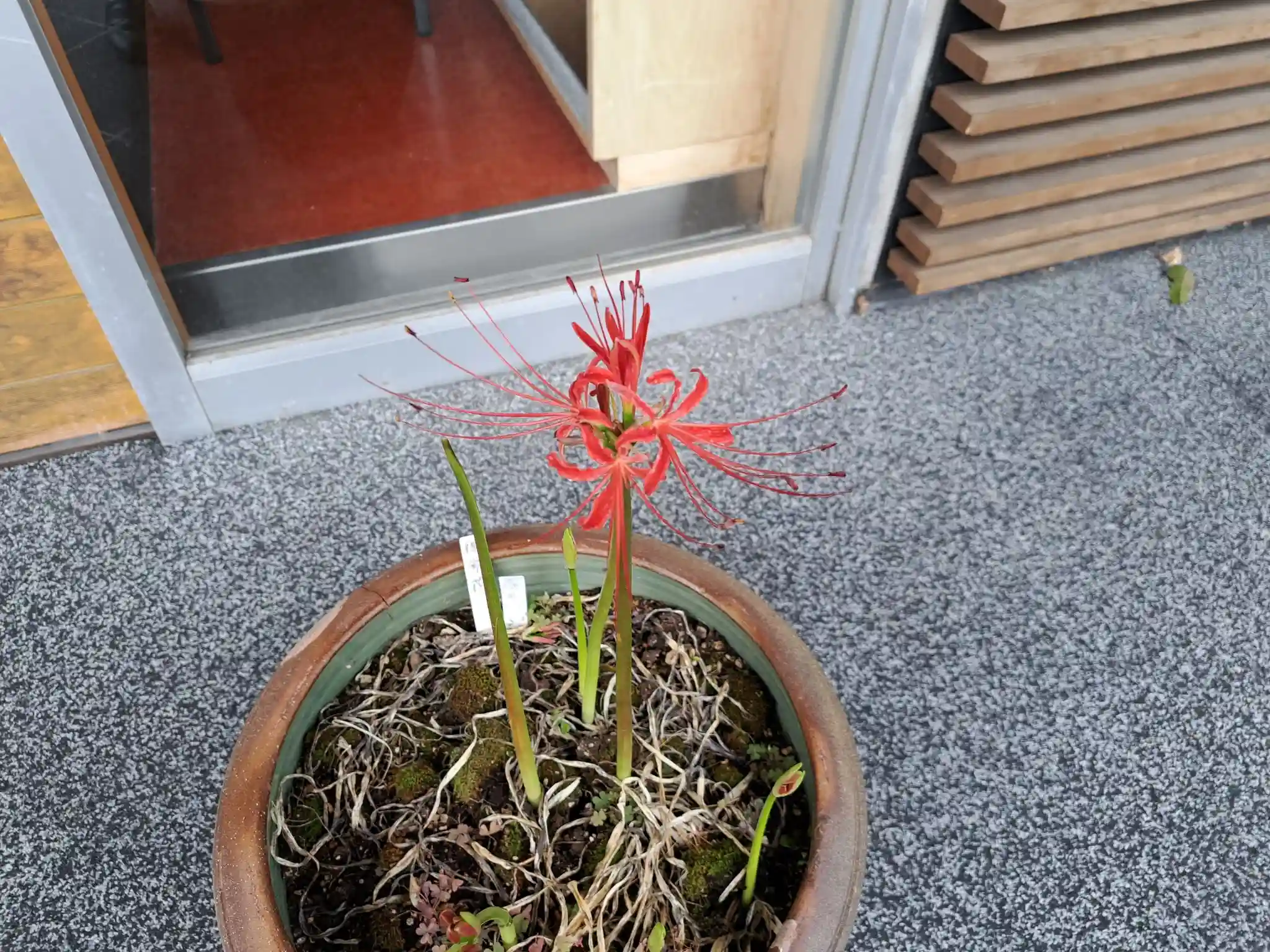 秋のお彼岸前にいきなり花芽をギュッと伸ばし花が咲くので、