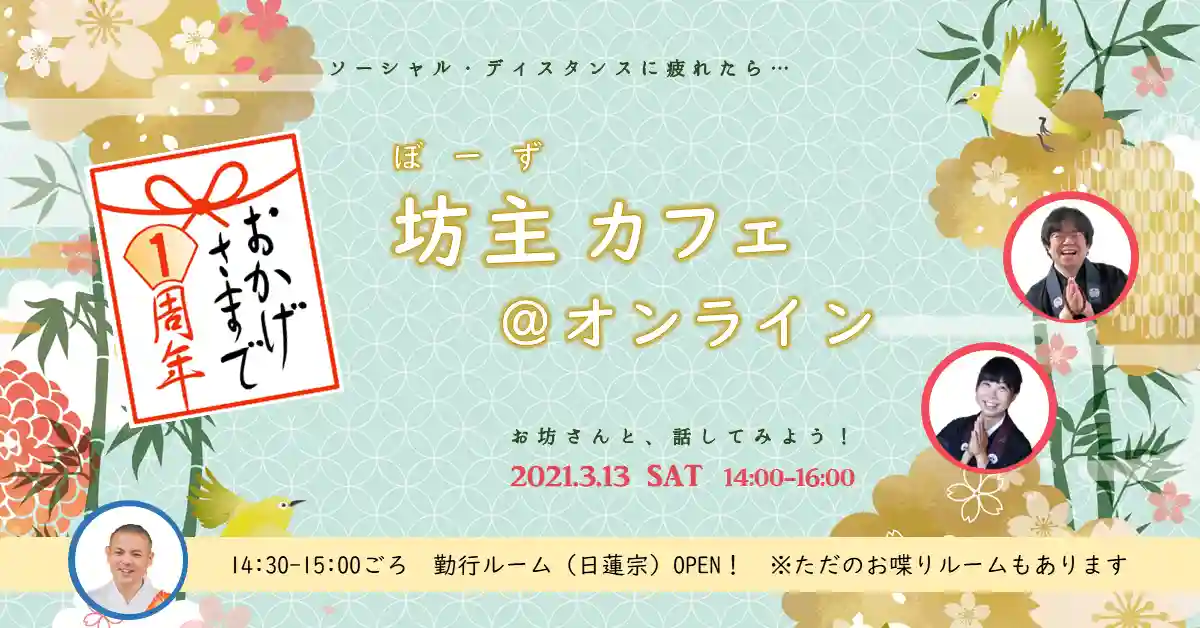 ソーシャル・ディスタンスに疲れたら――オンラインでお坊さんたちと、他愛もないお喋りなんていかがでしょう?