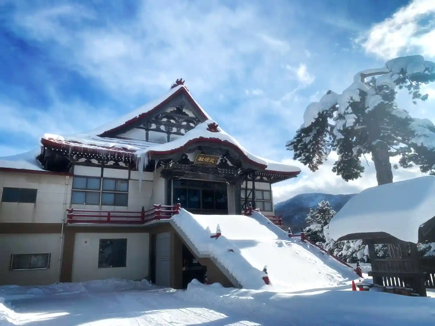 昨日の本堂の様子です。今年は積雪が多く、つららも大きめです。
