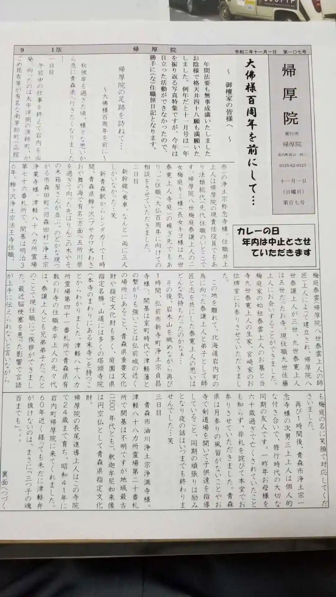 寺報帰厚院11月号