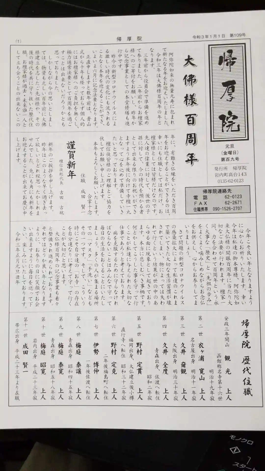 寺報 帰厚院 1月号