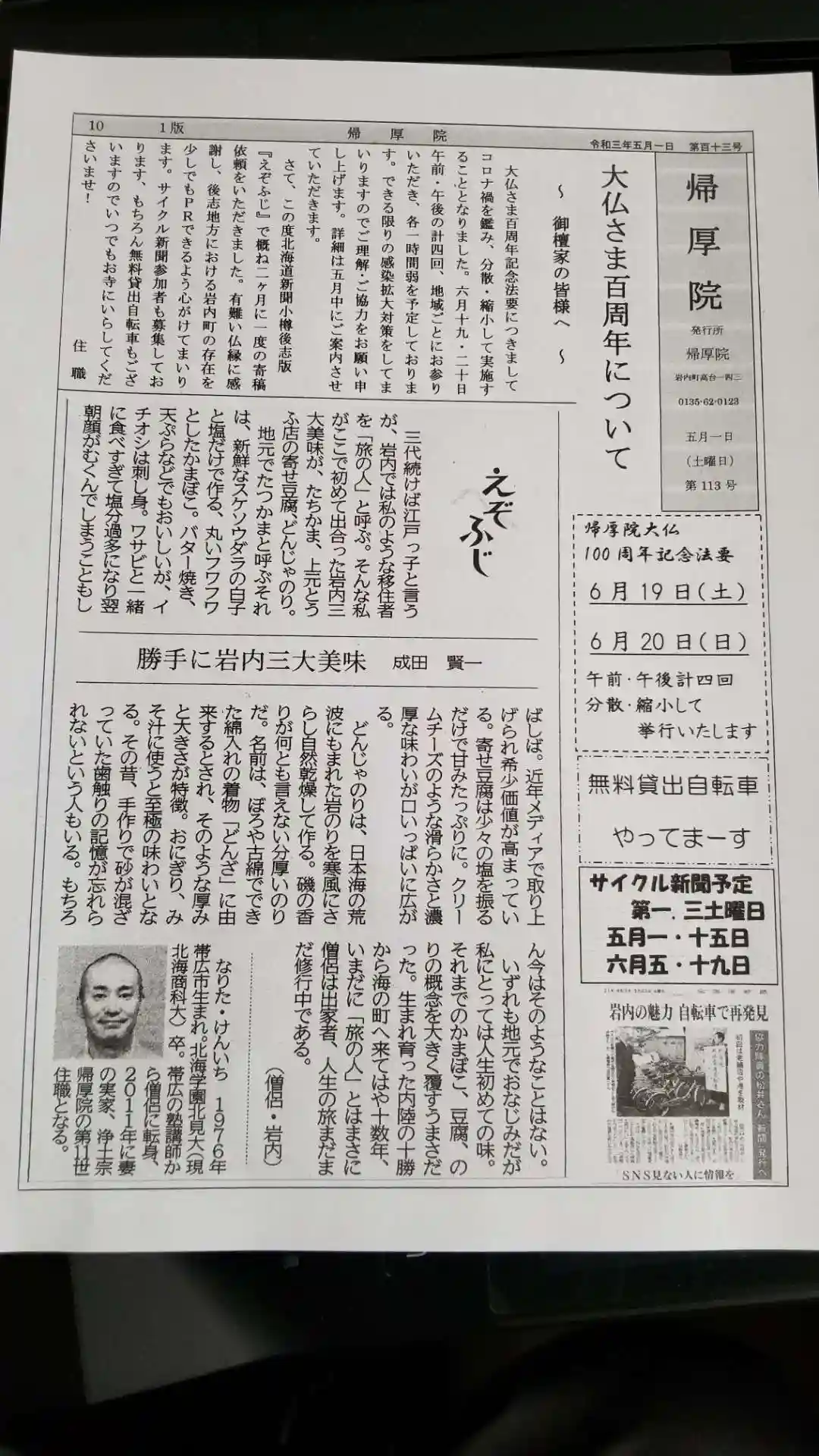 寺報帰厚院5月号